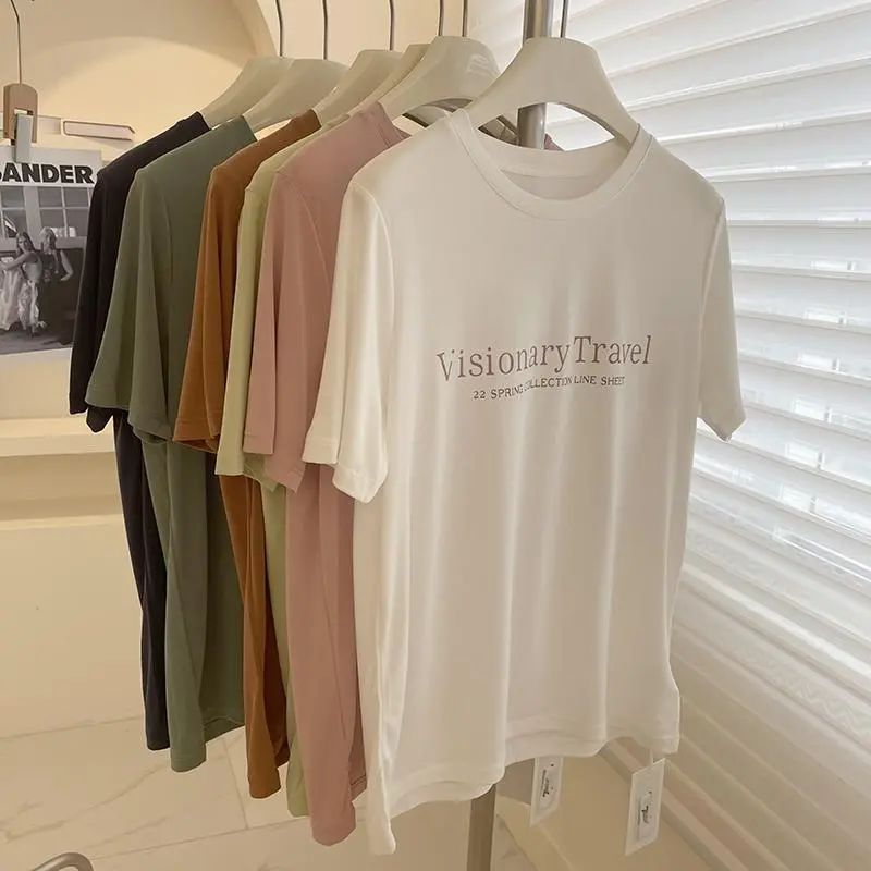 超手感莫代尔夏季新款垂软弹滑凉快字母印花圆领短袖T恤上衣女装