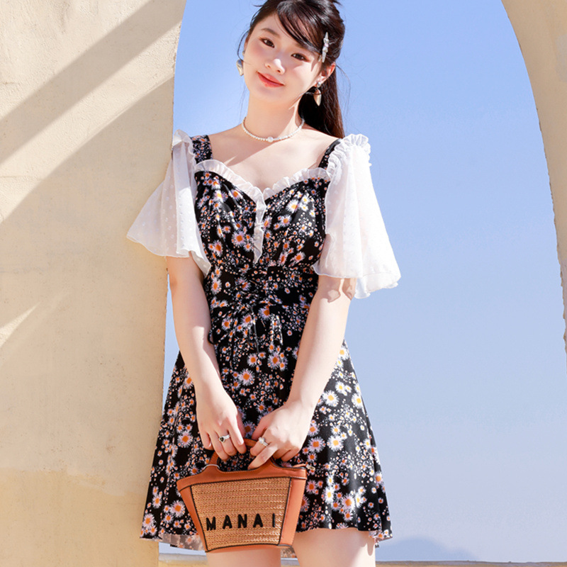 新款泳衣女连体平角保守显瘦遮肚韩版加肥大码胖妹泡温泉泳装