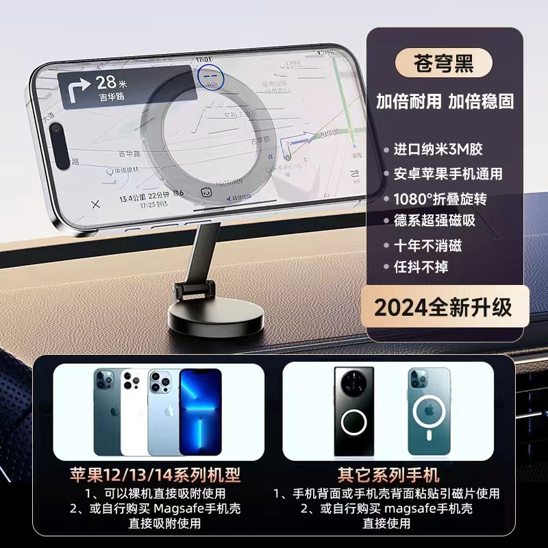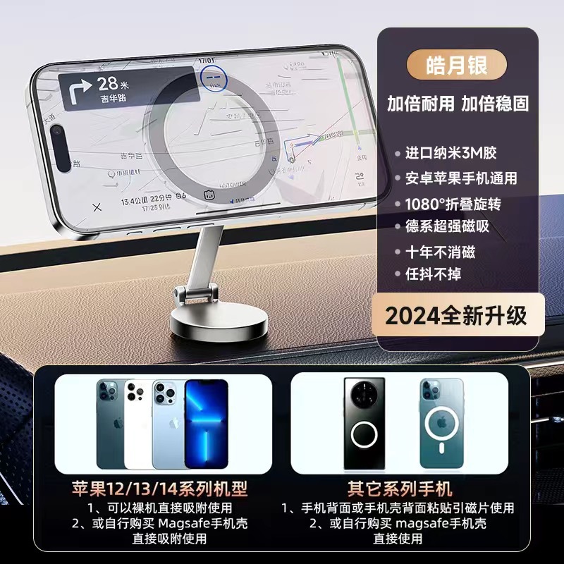 爆款磁吸车载支架magsafe磁吸固定汽车导航车用手机支架金属