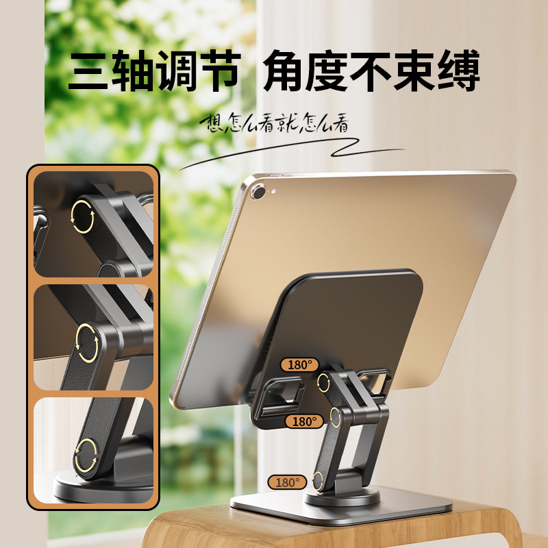三轴金属旋转pad平板支架手机支架桌面多功能支撑架便携折叠调节