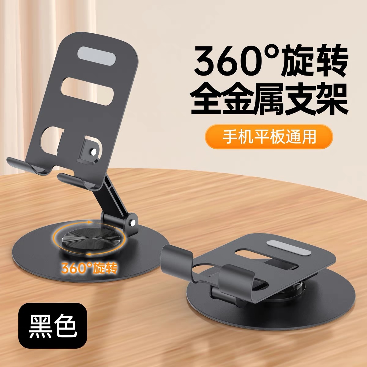 黑色【全金属★360度旋转★手机平板通用】