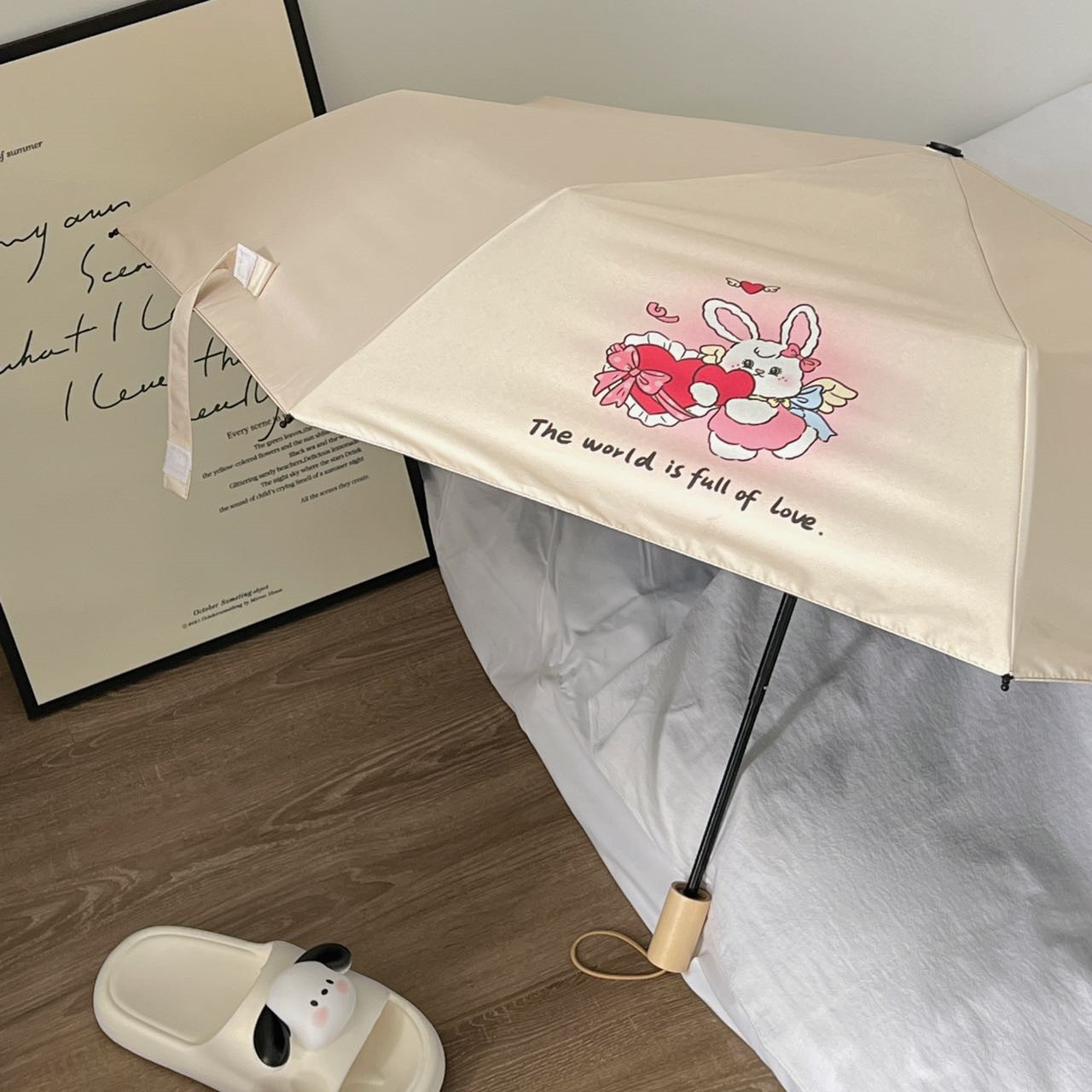 原创设计!天使兔子雨伞晴雨两用防晒黑胶伞少女太阳伞便携三折伞