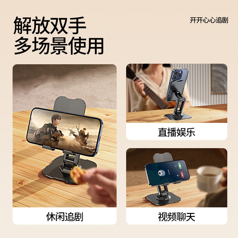 360度旋转手机支架双轴桌面金属可折叠懒人直播办公学习拍摄床头