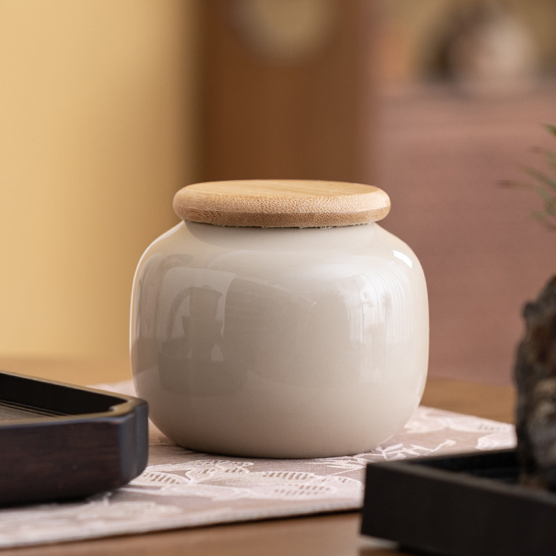 草木灰迷你小号茶叶罐家用陶瓷茶叶储存罐密封罐便携防潮茶仓空罐