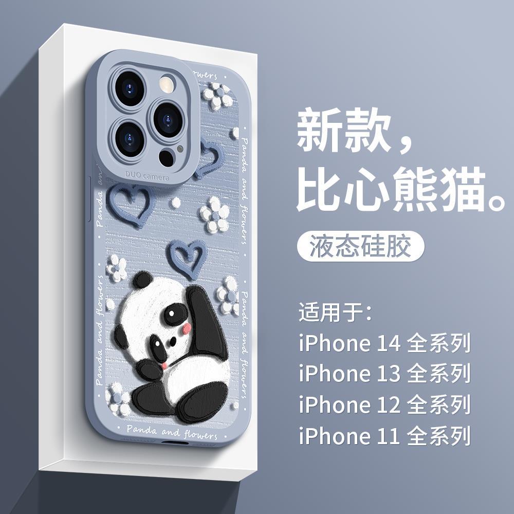 适用于苹果14手机壳比心熊猫xsmax超薄硅胶xr全包新款13pro潮牌iP