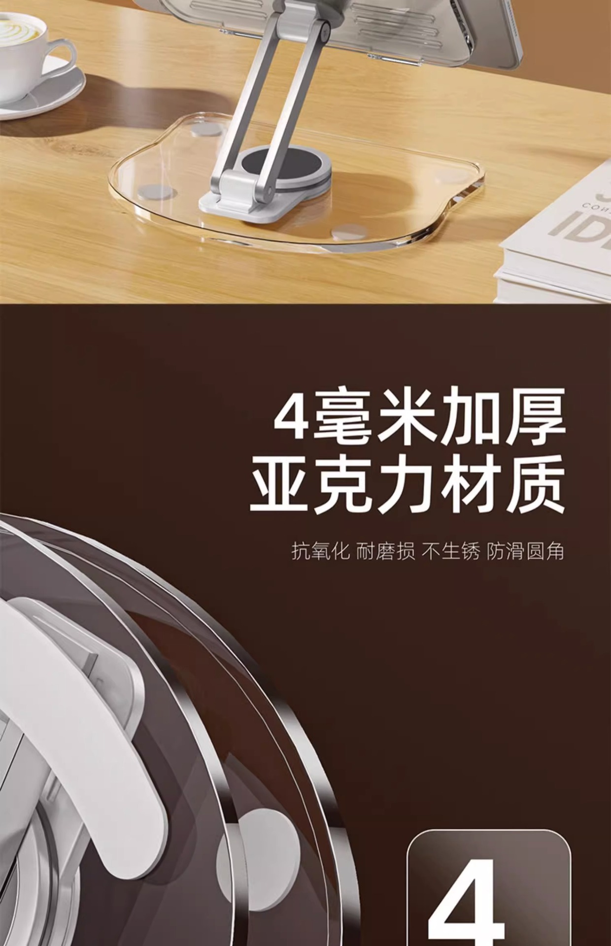旋转多功能桌面手机支架平板亚克力透明折叠学生宿舍追剧神器pad