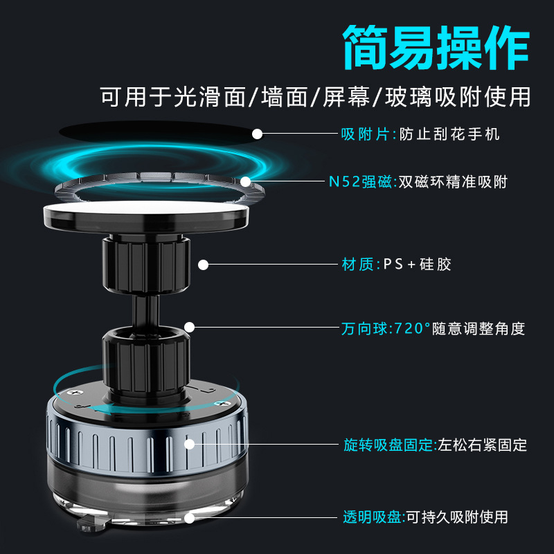 磁吸支架吸盘车载手机支架懒人车载导航仪表台吸附多功能桌面墙面