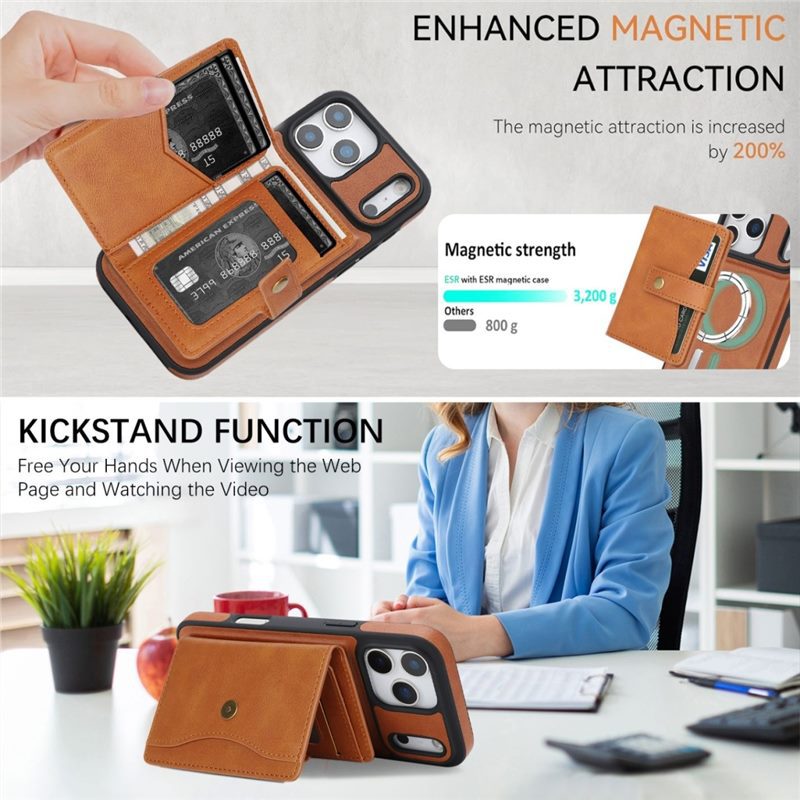 苹果17手机壳16保护套iPhone15高档强磁吸卡包钱包二合一保护套薄