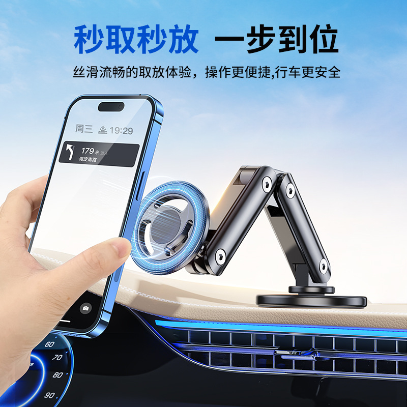 Magsafe磁吸车载手机支架汽车铝合金属导航旋转折叠粘贴中控神器