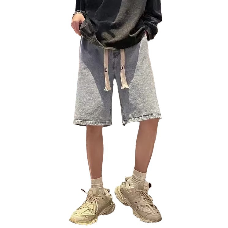 编织绳复古牛仔短裤男夏季欧美高街潮牌五分裤宽松直筒学生休闲裤