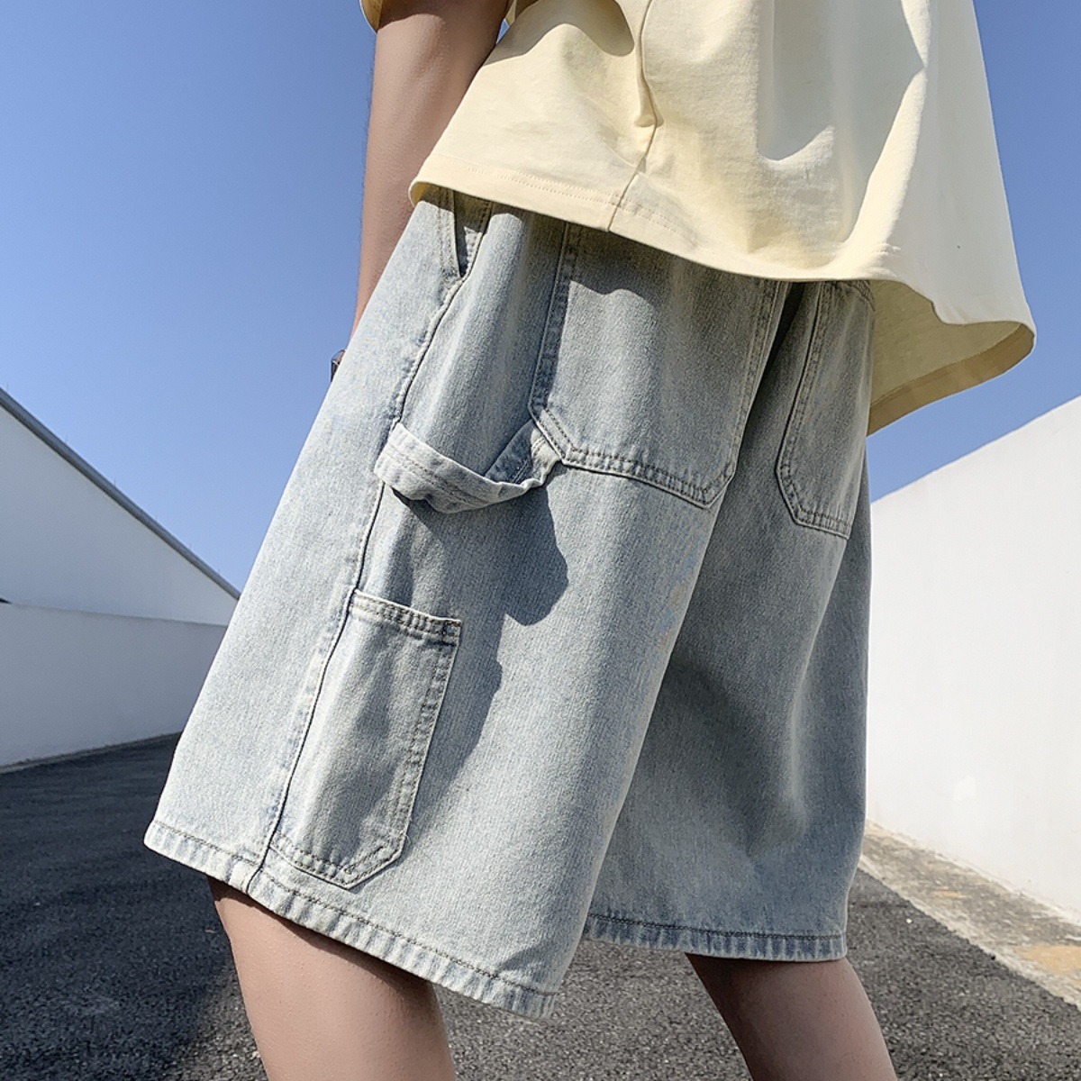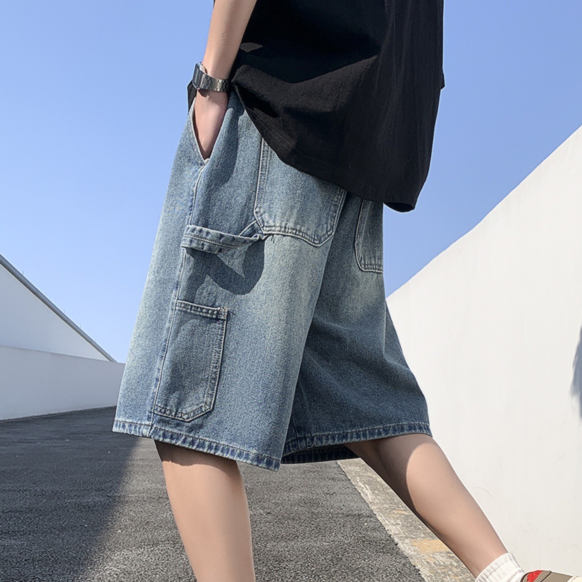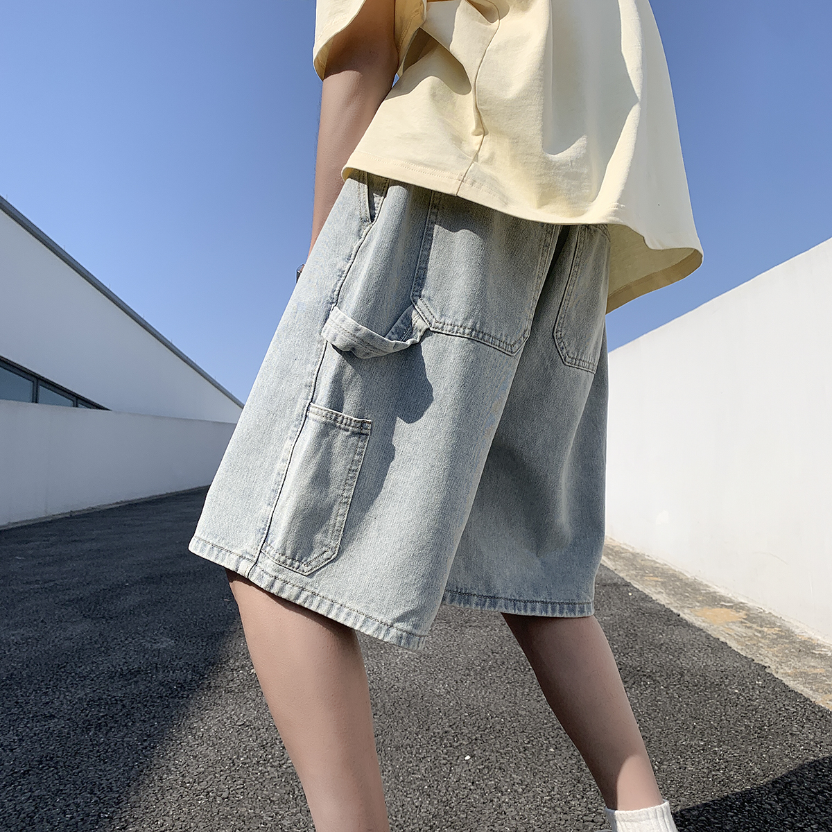 工装牛仔短裤男夏季休闲裤子潮牌美式复古五分裤欧美水洗中裤