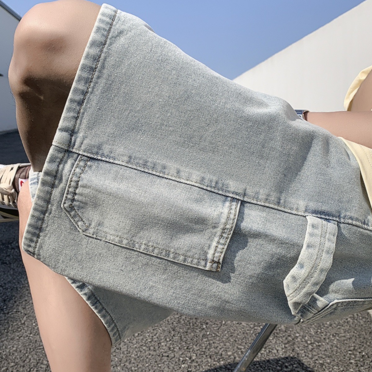 复古a字阔腿牛仔短裤女夏季年新款显瘦学生宽松高腰热裤子潮