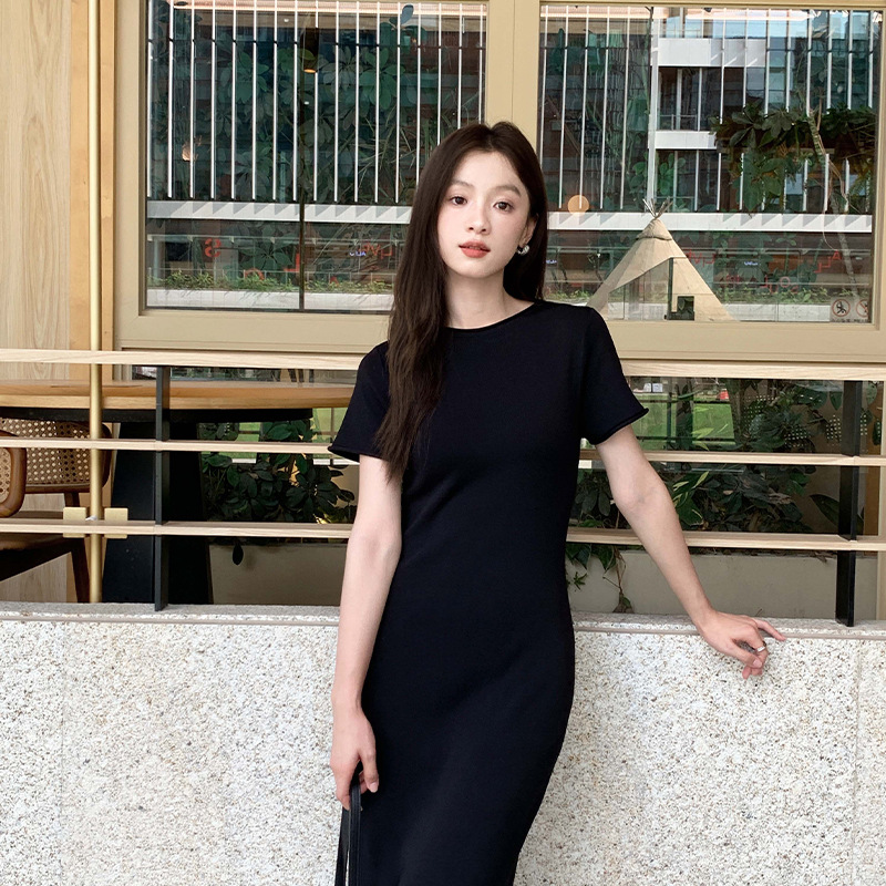 极简时尚修身显瘦质感垂感连衣裙法式女气质针织长裙小黑裙