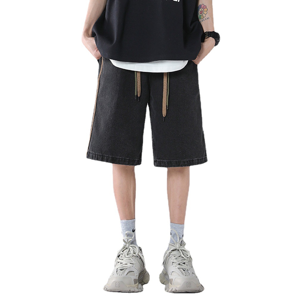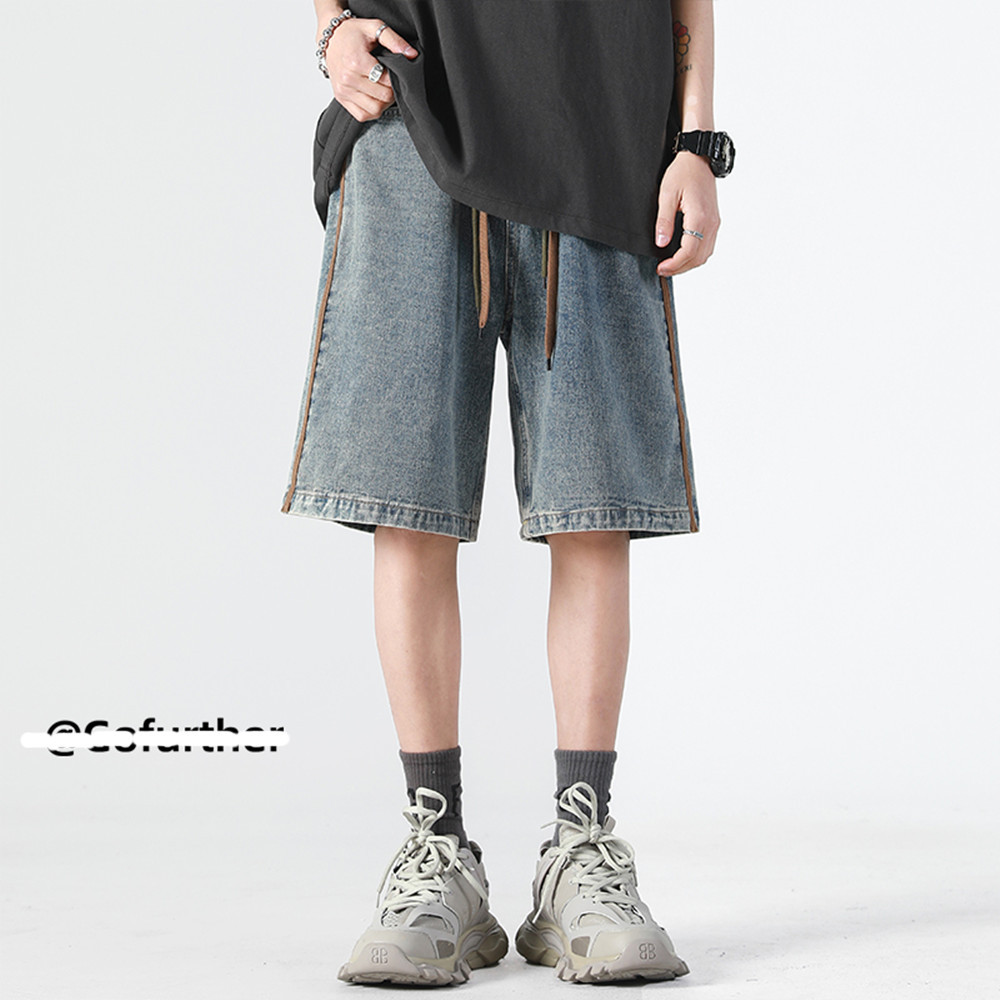 美式复古水洗牛仔短裤男夏季潮牌欧美高街半裤抽绳高级感五分裤子