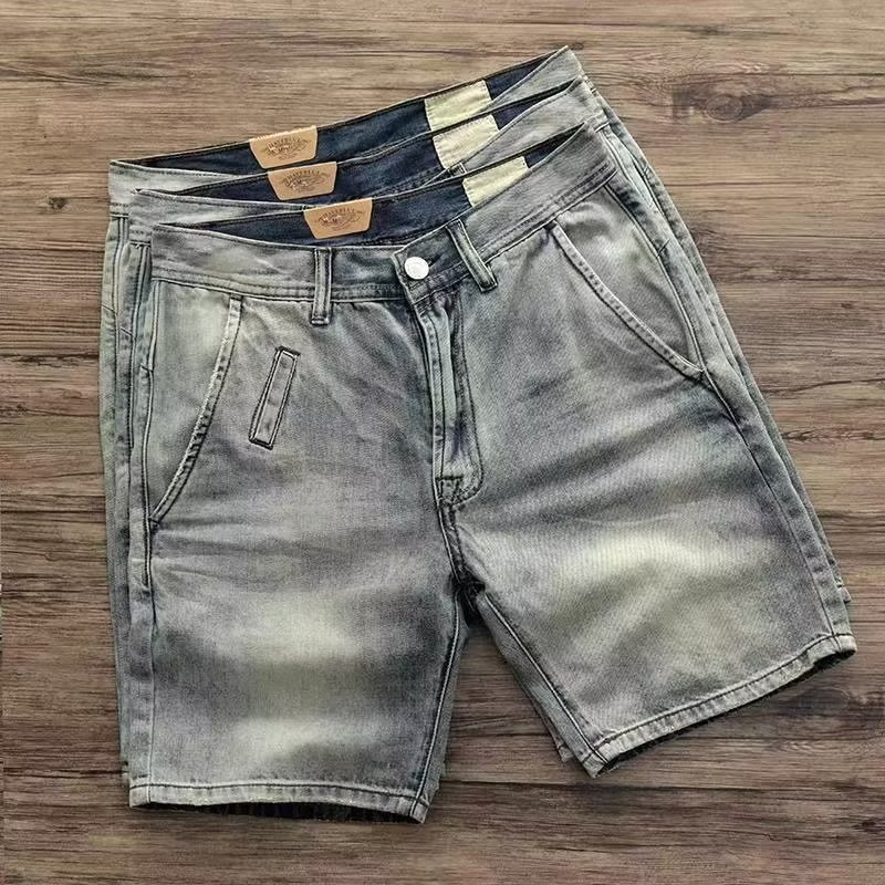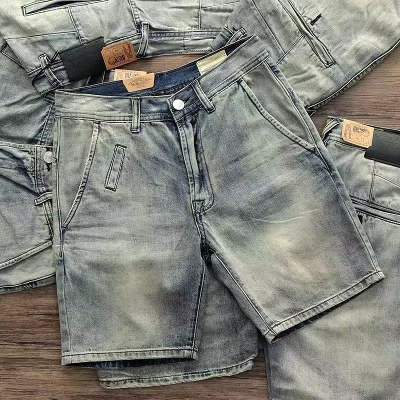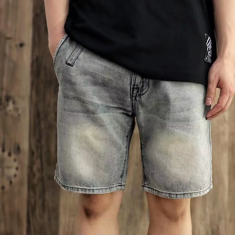 牛仔短裤男三分四分裤超短裤潮牌夏季欧美复古水洗怀旧3分4分裤潮