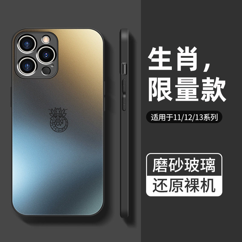 新款龙适用于苹果14手机壳15磨砂玻璃简约防摔iphone13全包潮牌