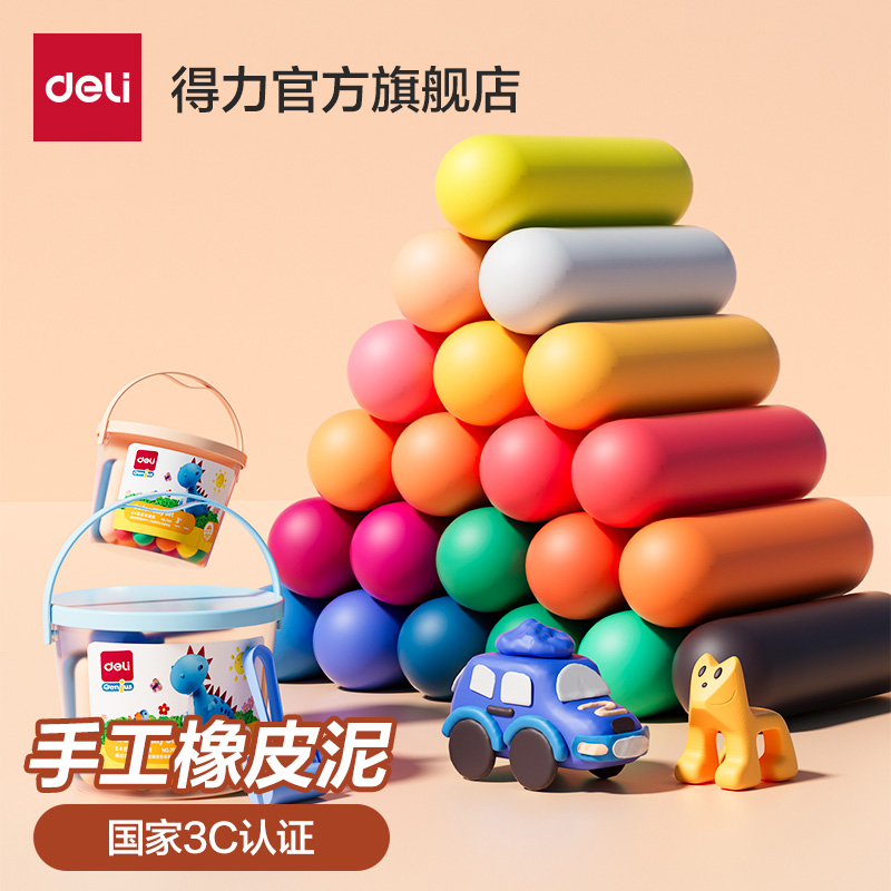 得力彩泥24色橡皮泥儿童抗菌彩泥手工12色桶装玩具安全标准黏土套装