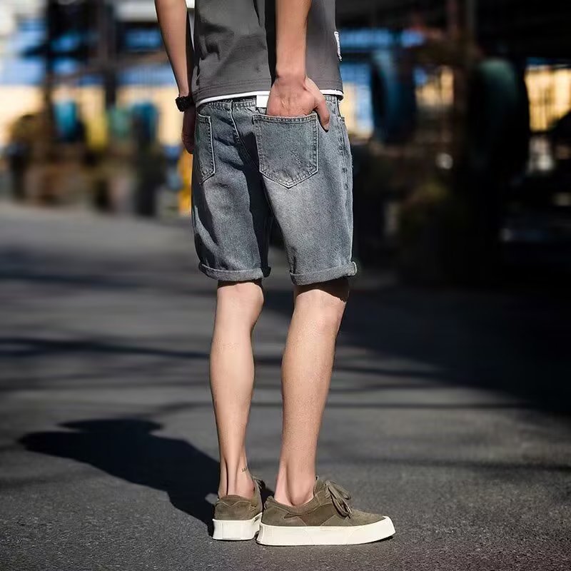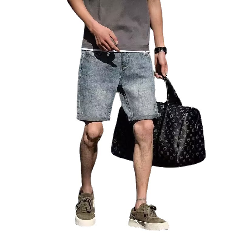 牛仔短裤男ins欧美潮流百搭中裤夏季薄款直筒休闲工装五分裤