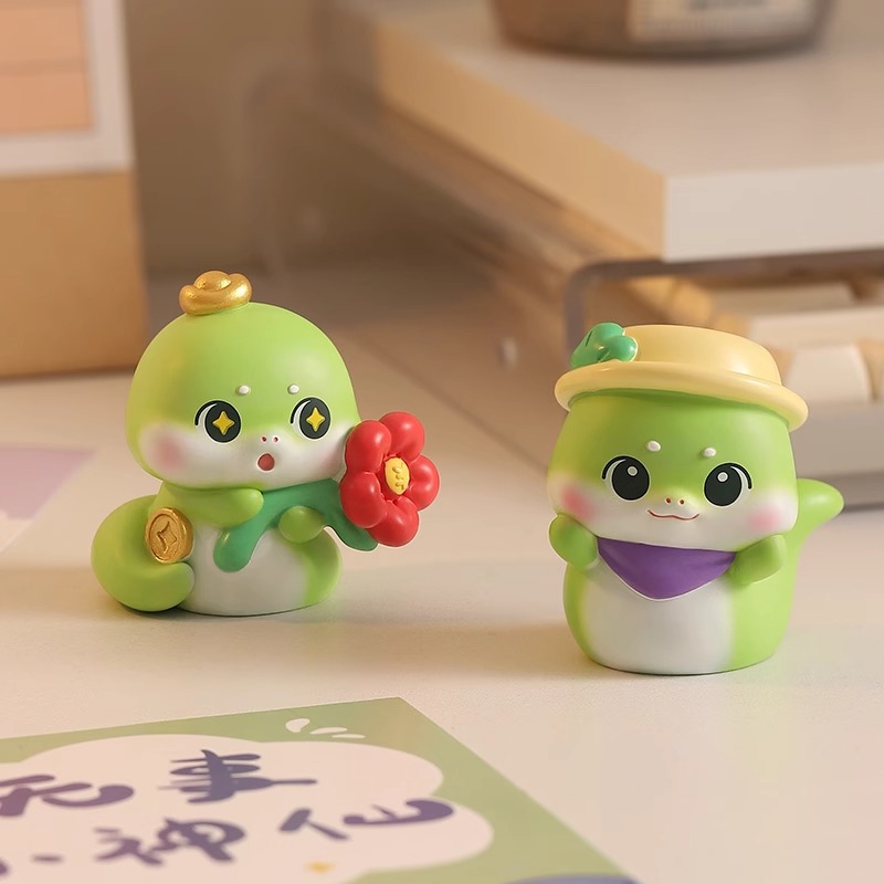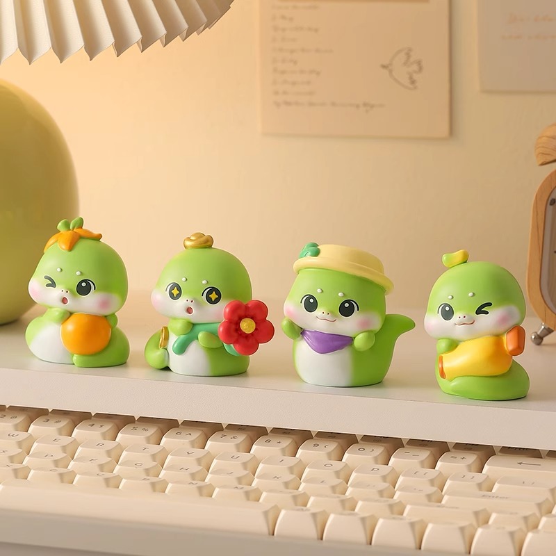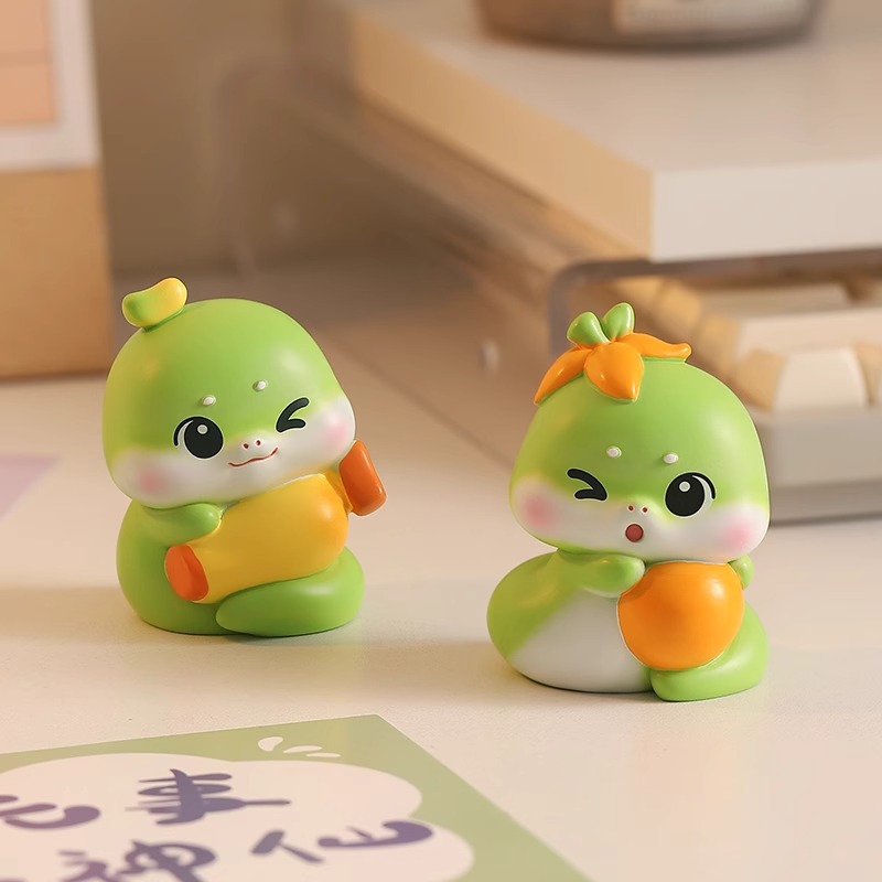可爱青蛇小摆件办公工位桌面车载蛇年装饰品