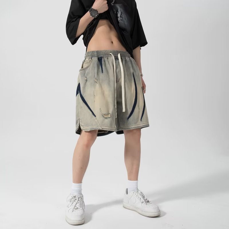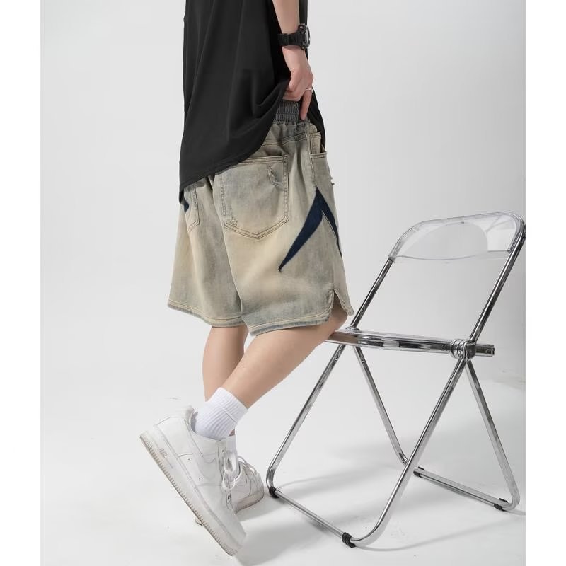 美式破洞裤高街男裤子夏季牛仔短裤潮牌复古ins欧美风嘻哈五分裤