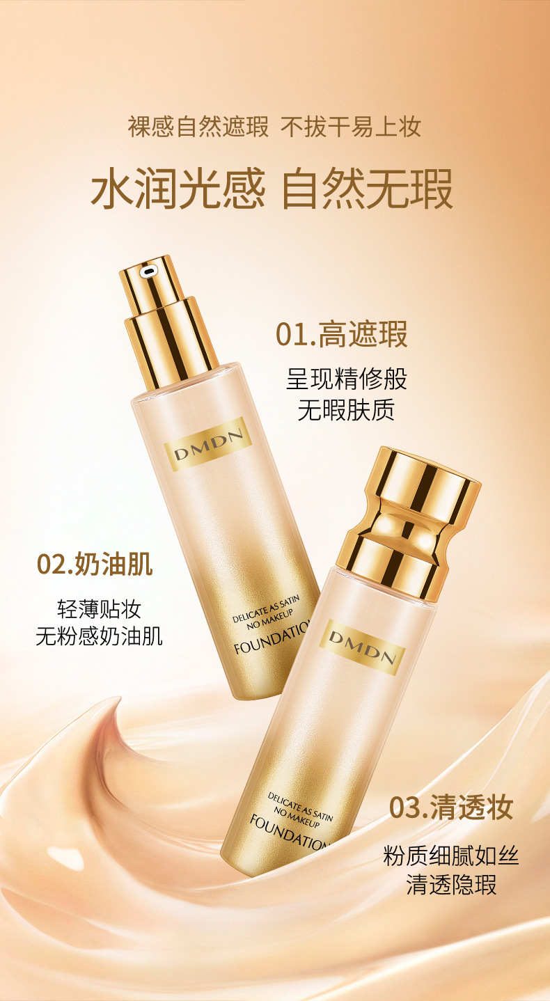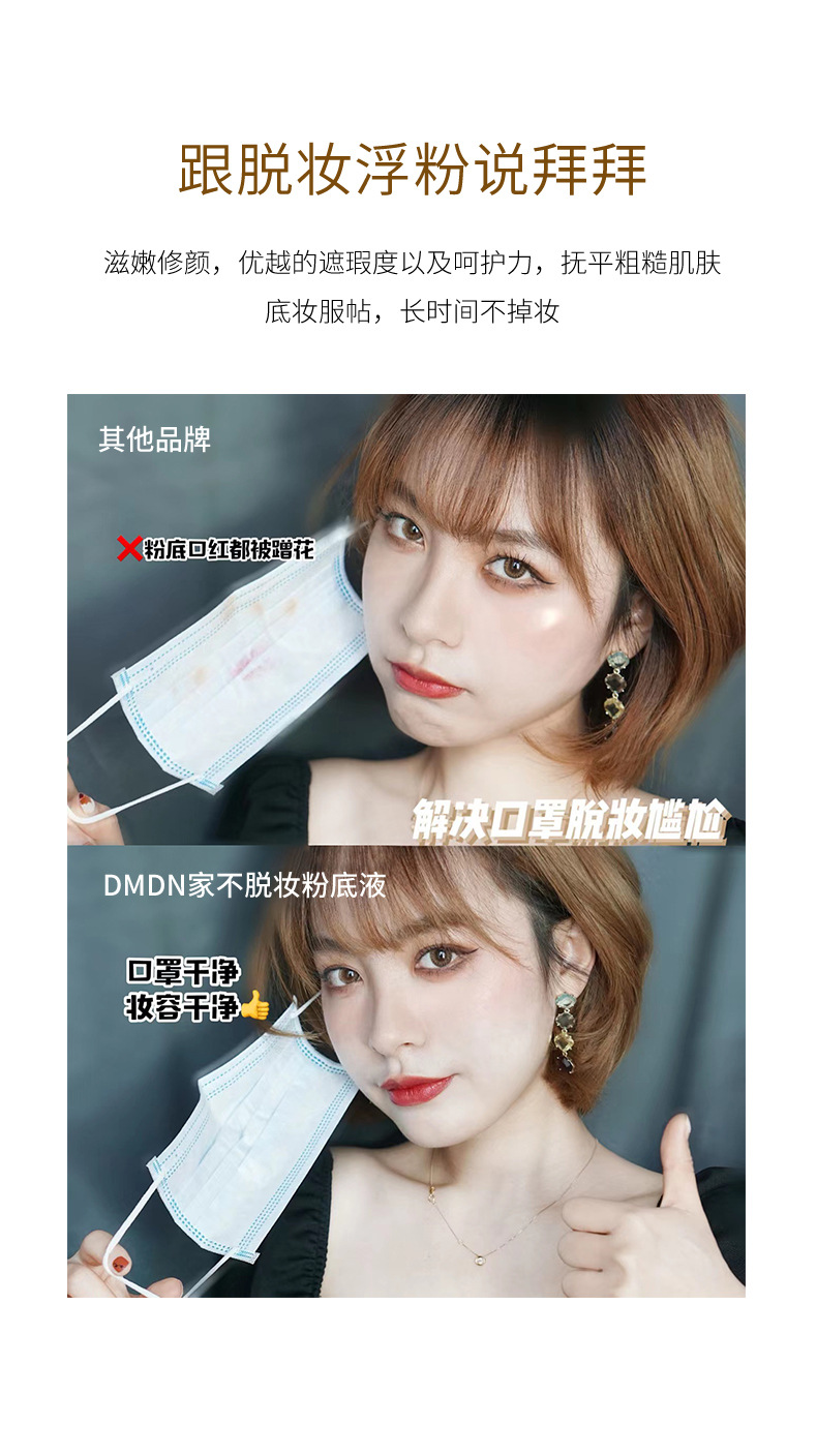 不易脱妆粉底液自然遮瑕持妆不沾口罩养肤粉底遮瑕液