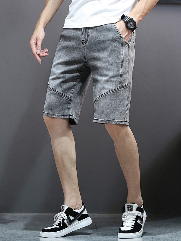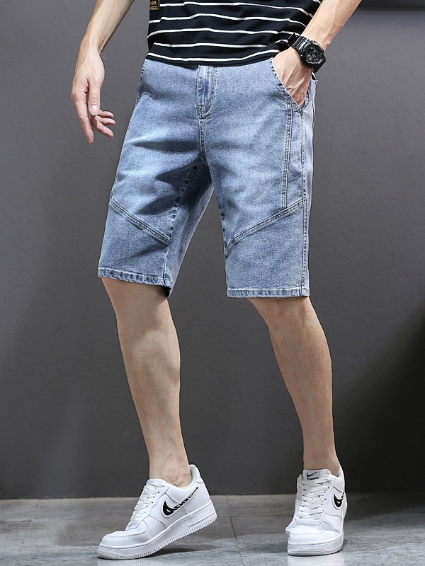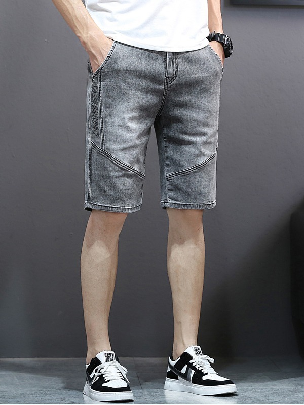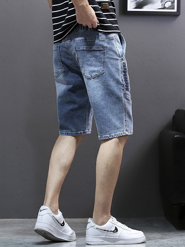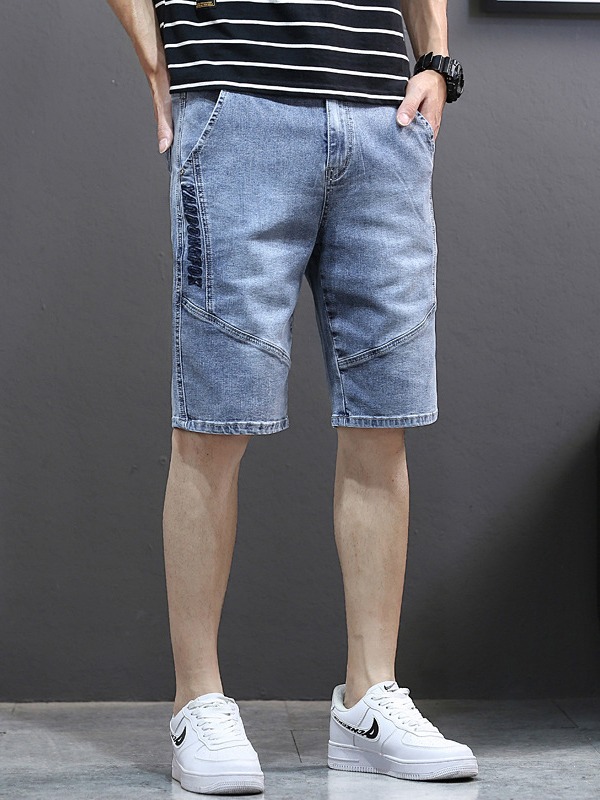 夏季刺绣五分牛仔裤男5分加肥加大码直筒中裤男宽松欧美风牛仔裤