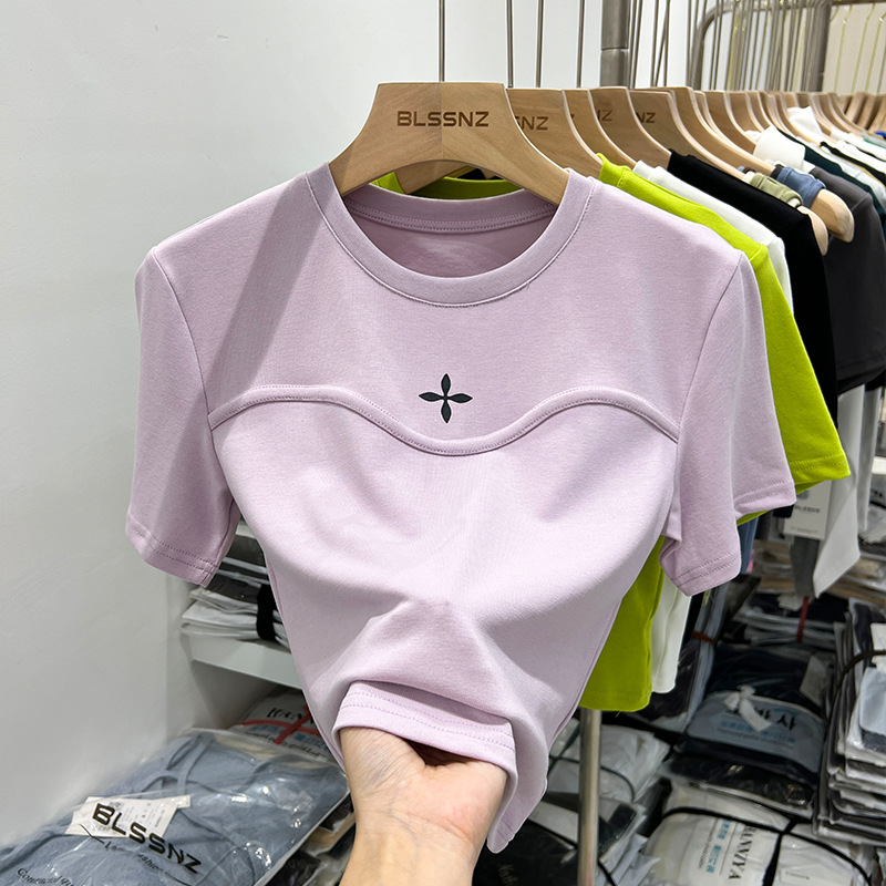 短袖T恤女设计感小众甜美减龄法式泡泡袖纯棉宽松体桖夏季上衣服