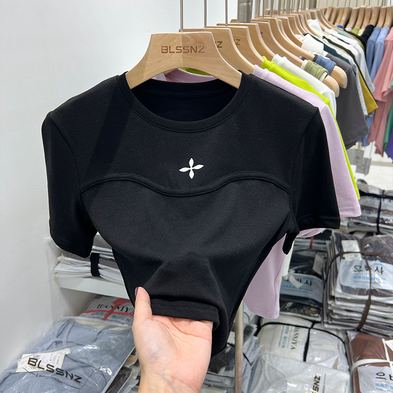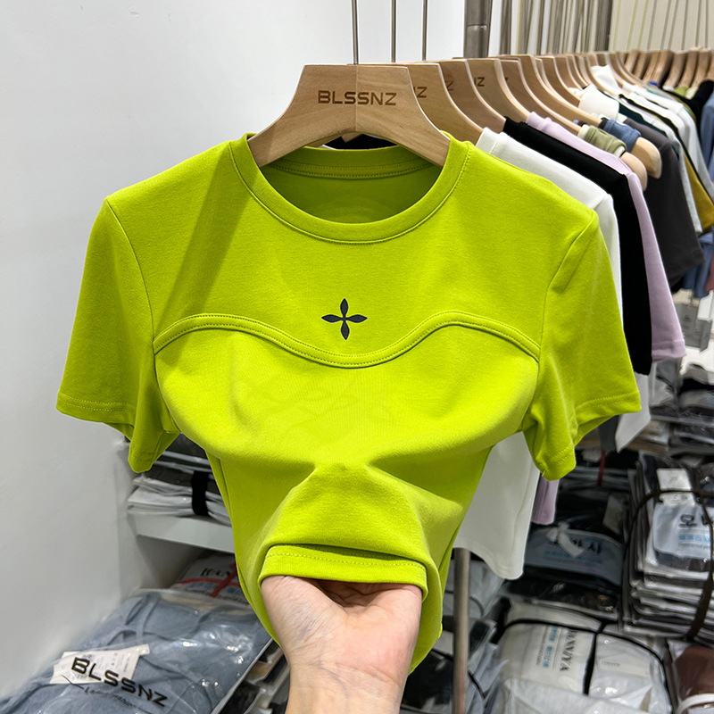 欧货白色短袖t恤女修身夏季新款洋气鱼骨别致短款上衣打底衫