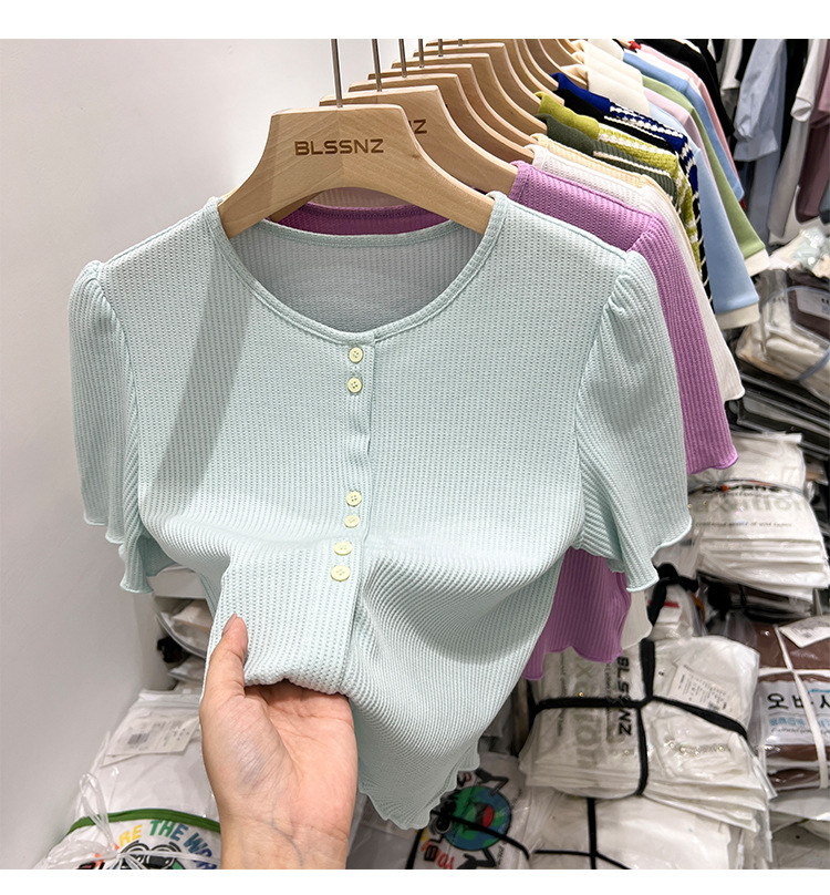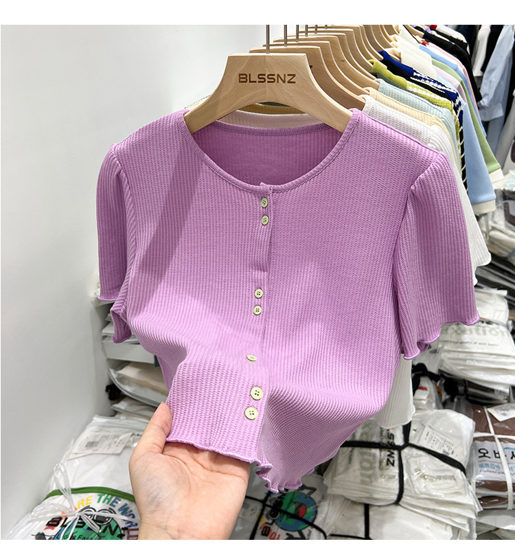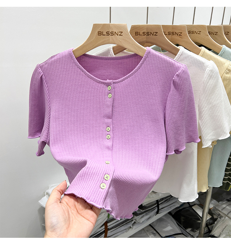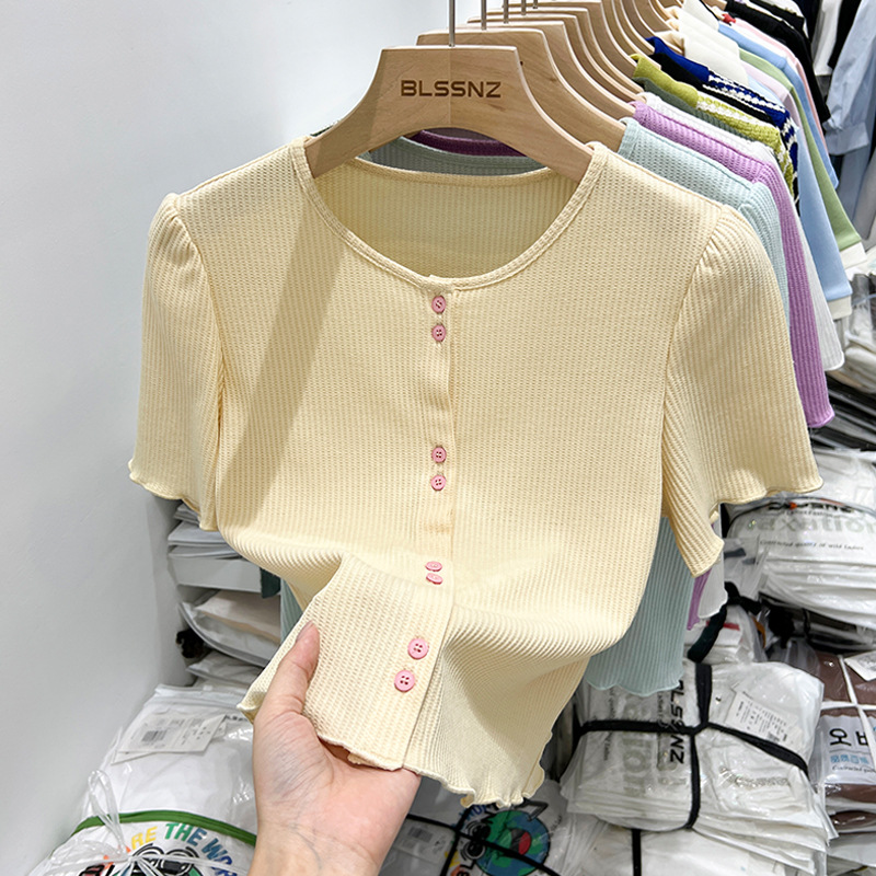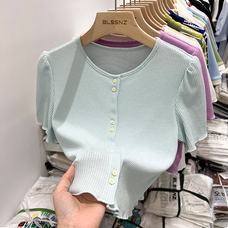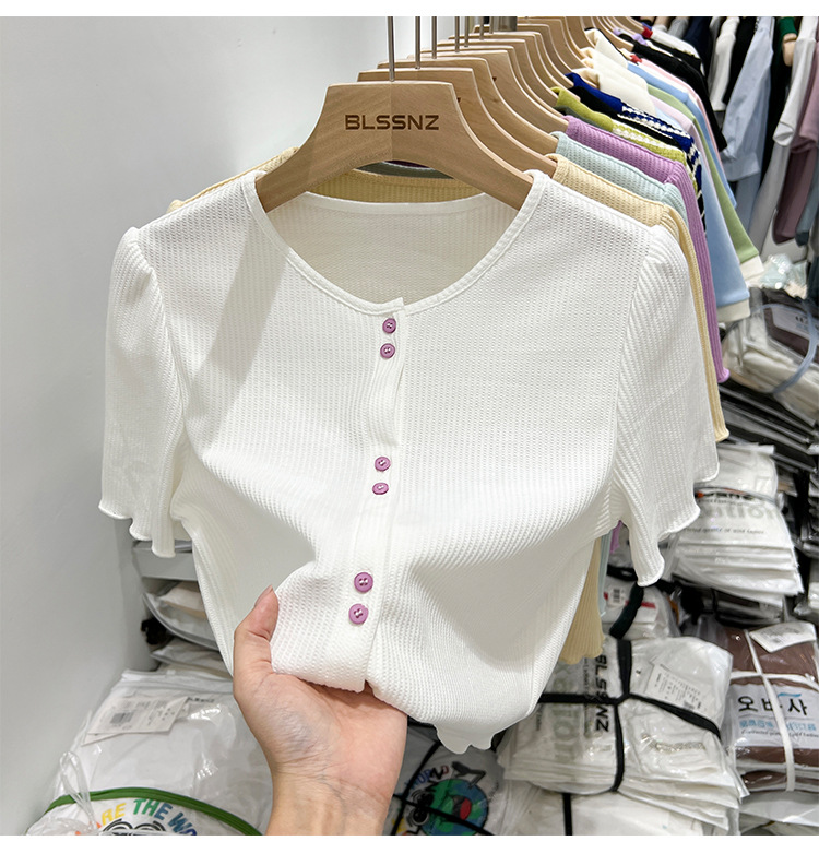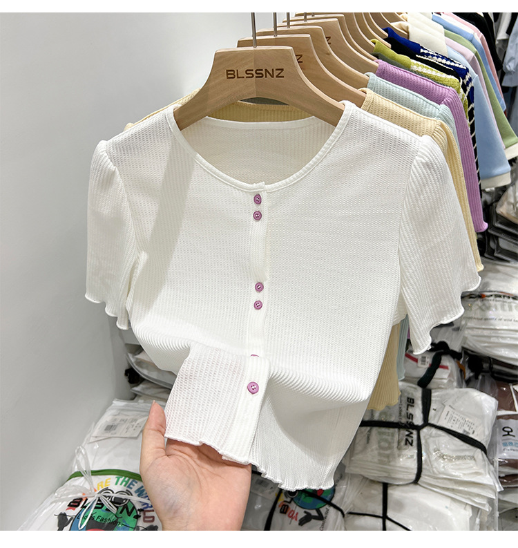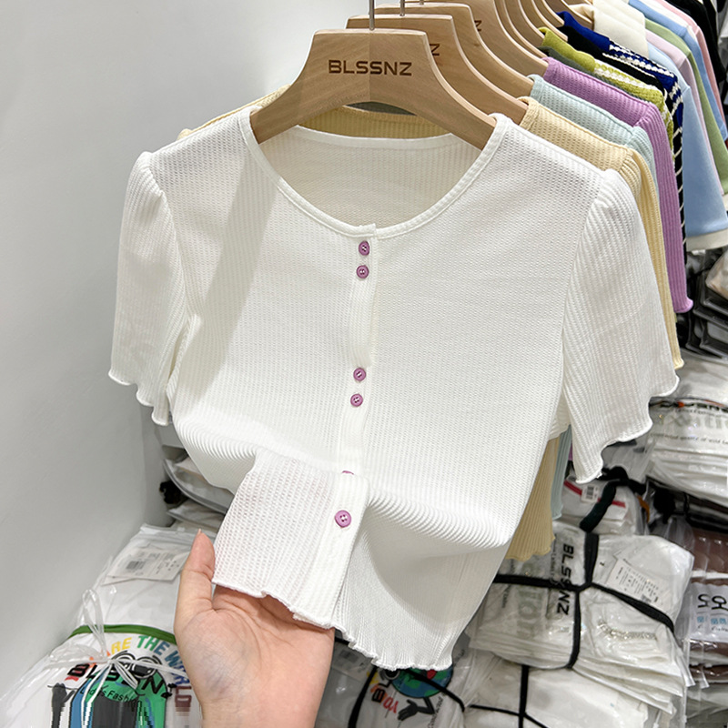 白色短袖t恤女开衫夏季新款纯欲独特别致短款上衣女设计感ins