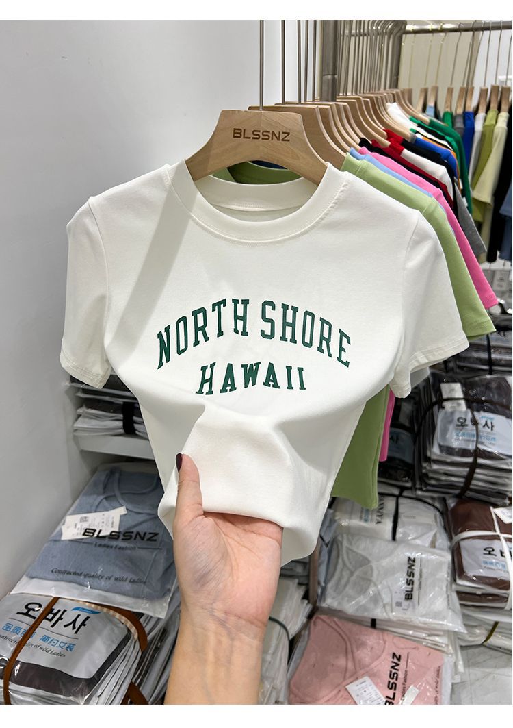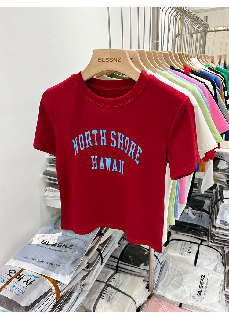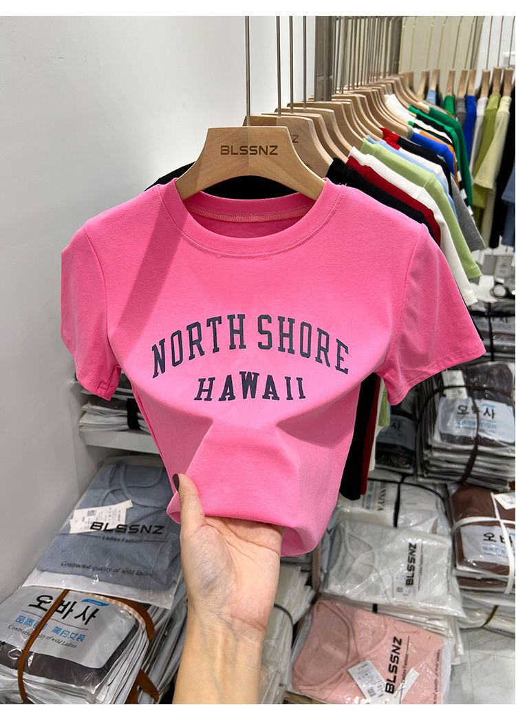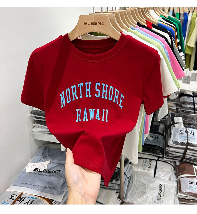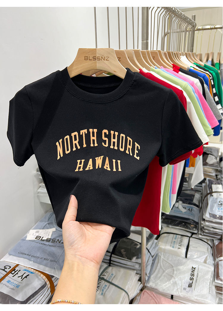 黑色t恤女短袖修身显瘦夏季新款印花字母百搭短款上衣女