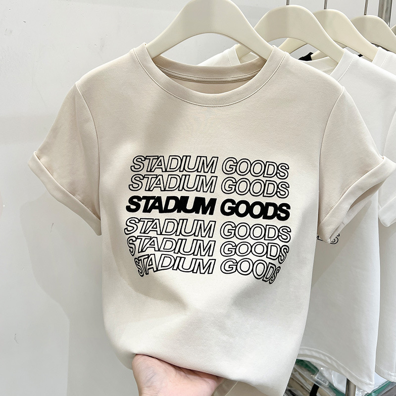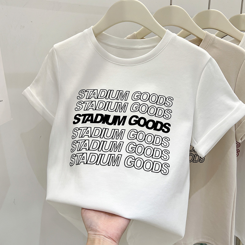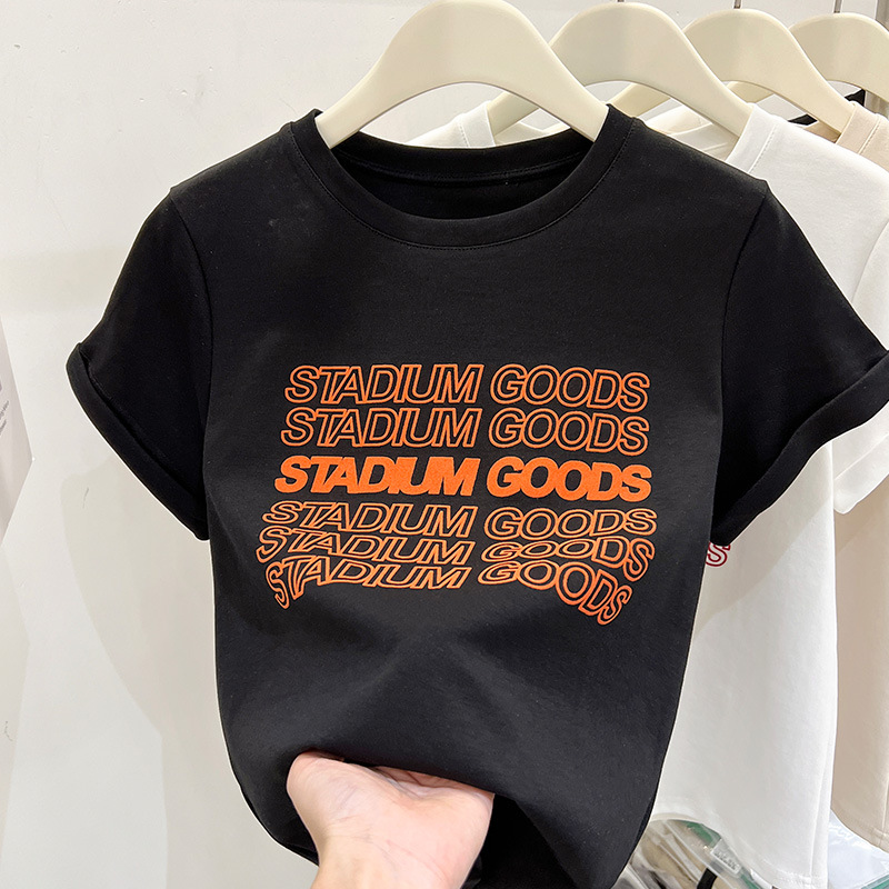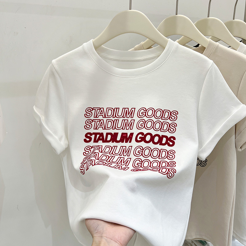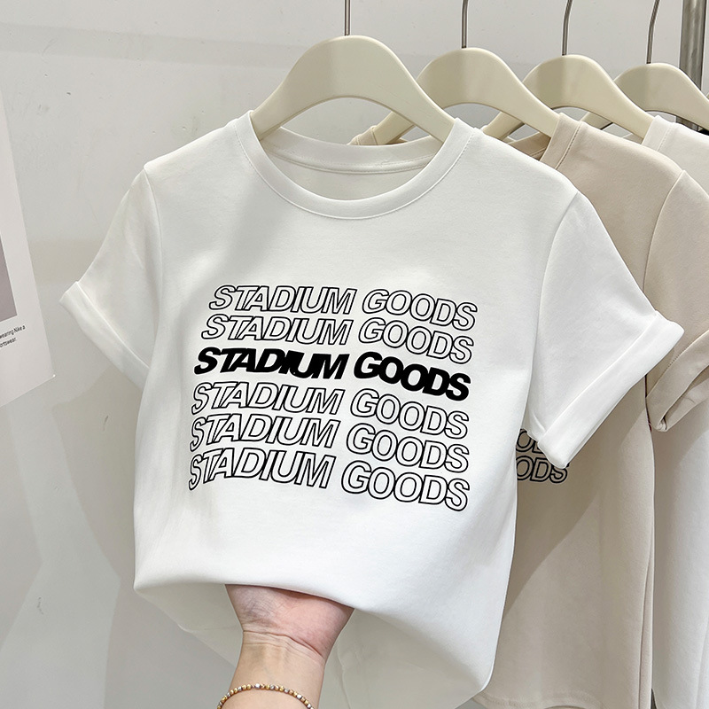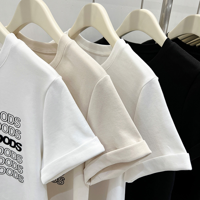 圆领宽松短袖t恤女印花设计感夏装独特别致正肩百搭上衣