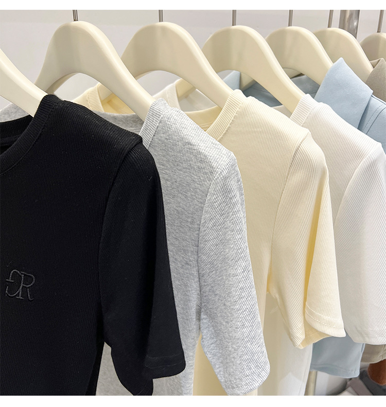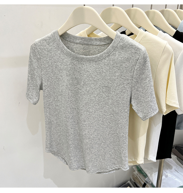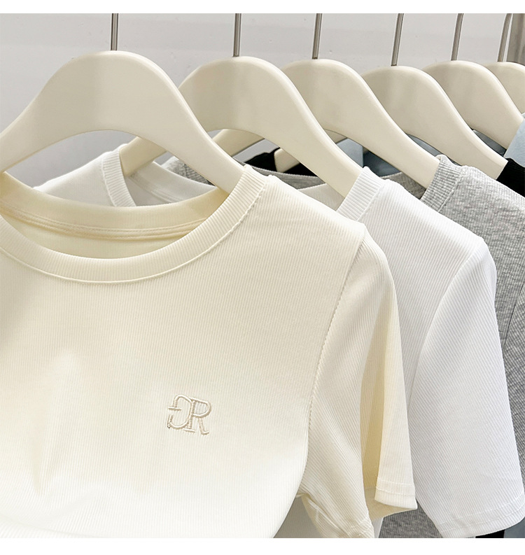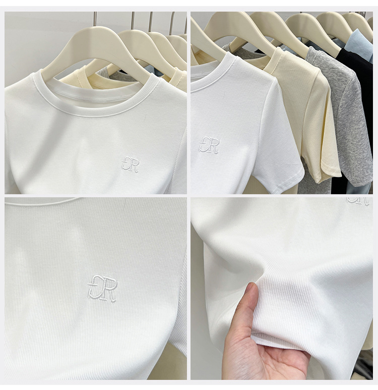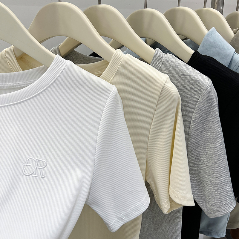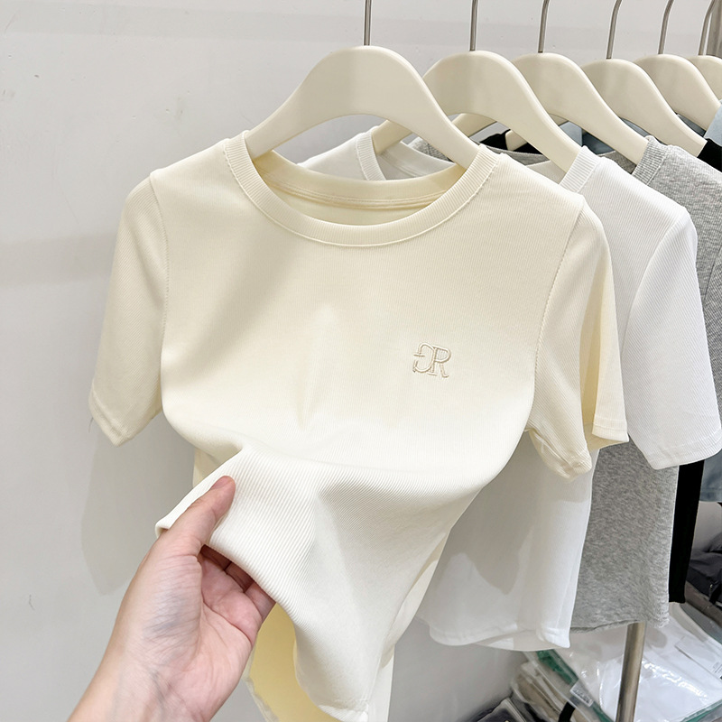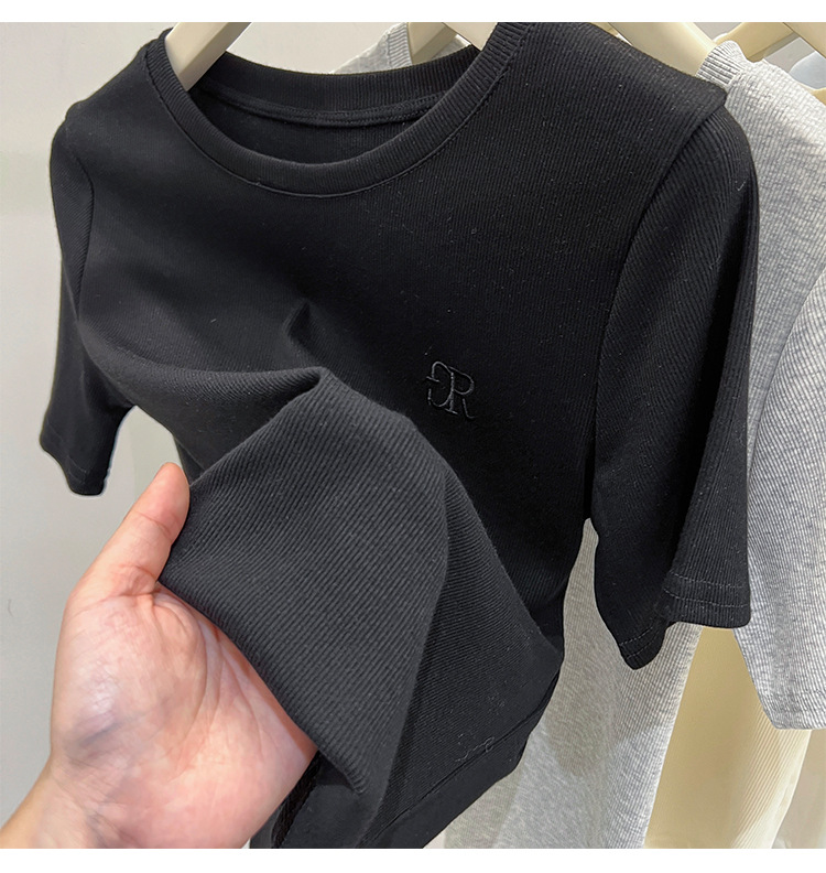 刺绣短袖t恤女正肩新款设计感夏装小众修身欧货上衣
