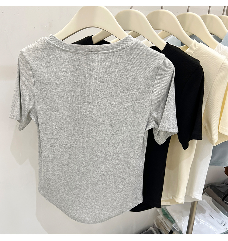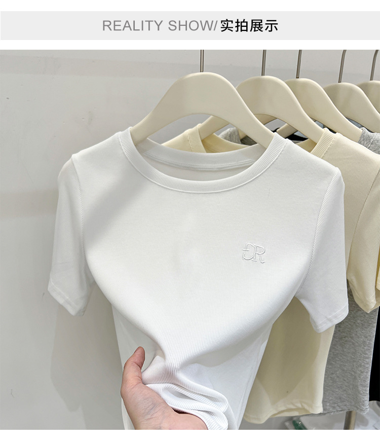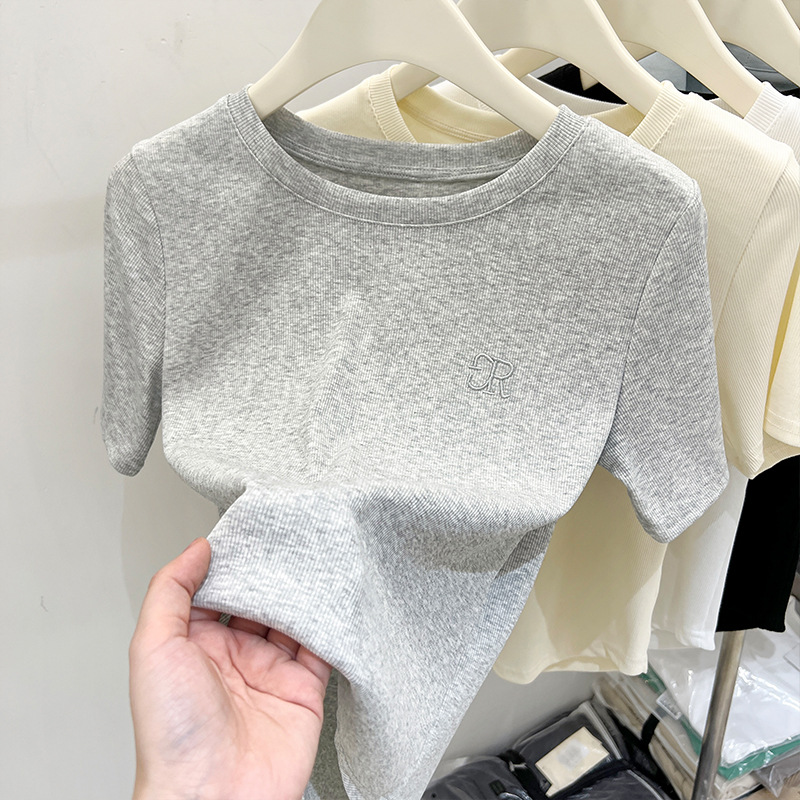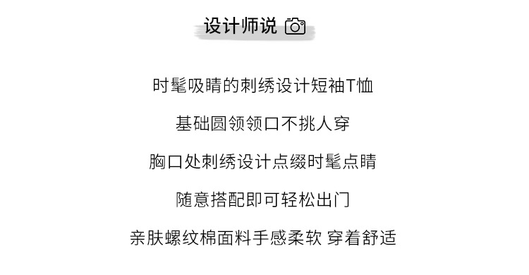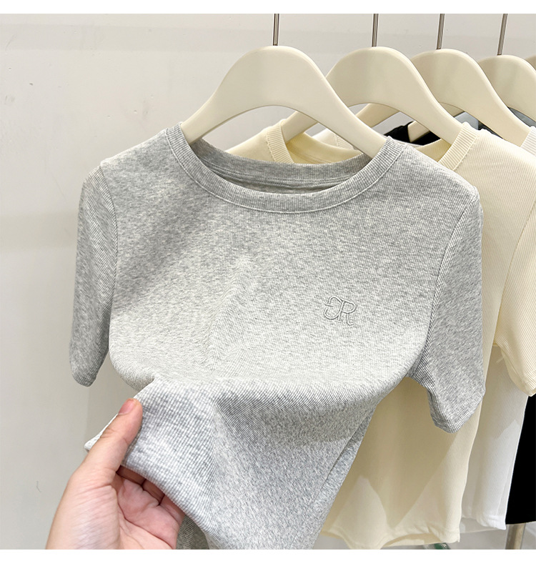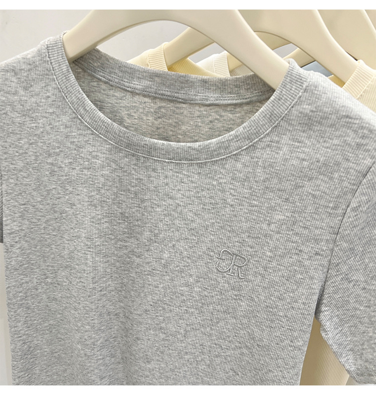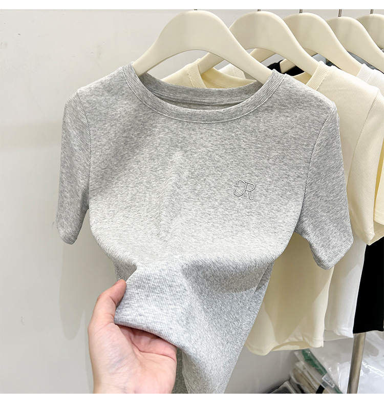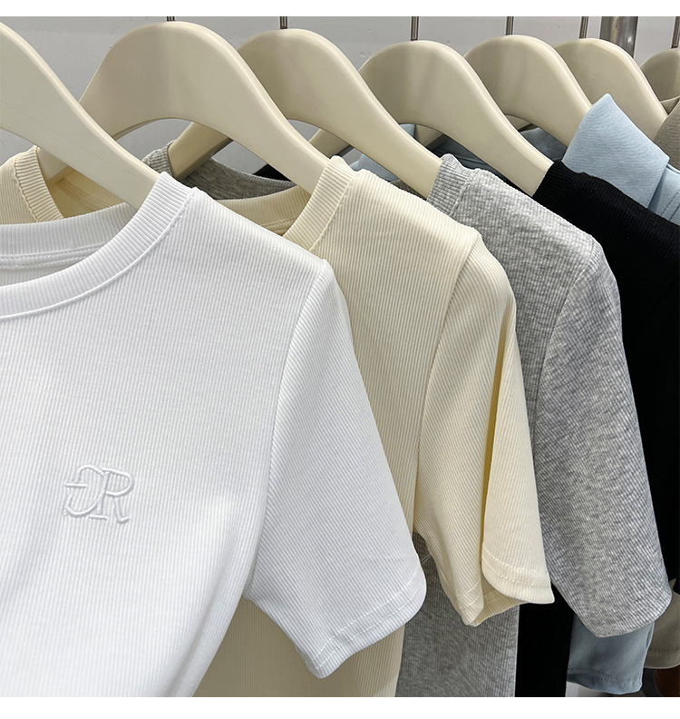 刺绣短袖t恤女正肩新款设计感夏装小众修身欧货上衣