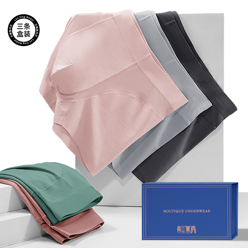 礼盒装男士内裤莫代无痕内裤男士平角裤透气网孔青年四角裤