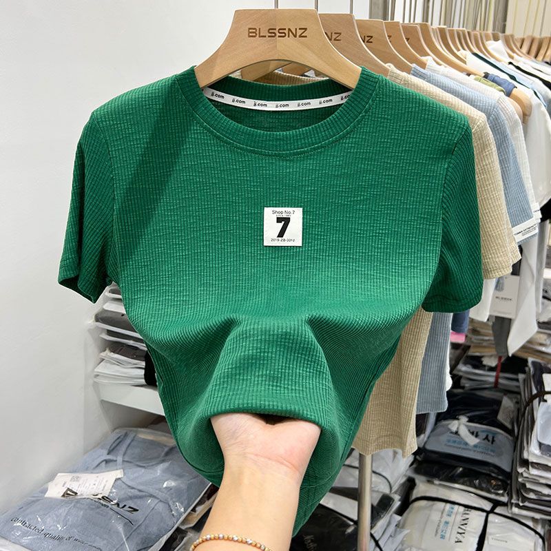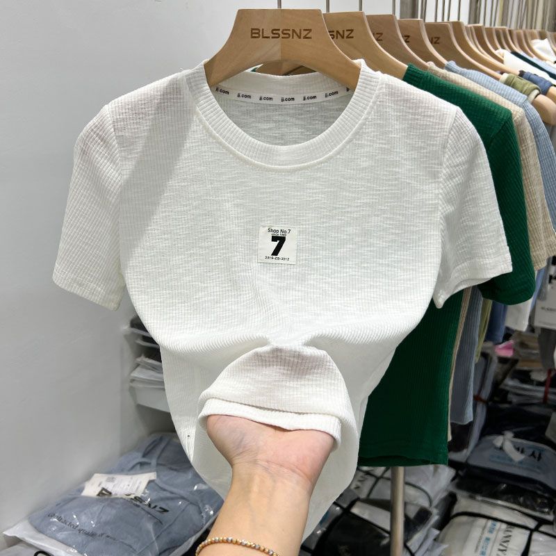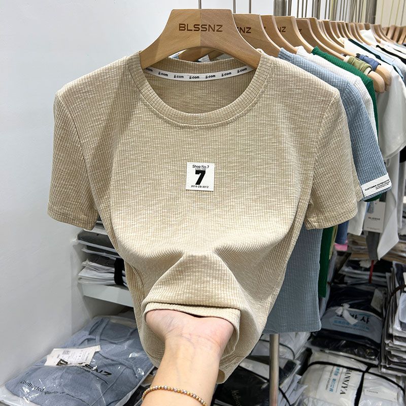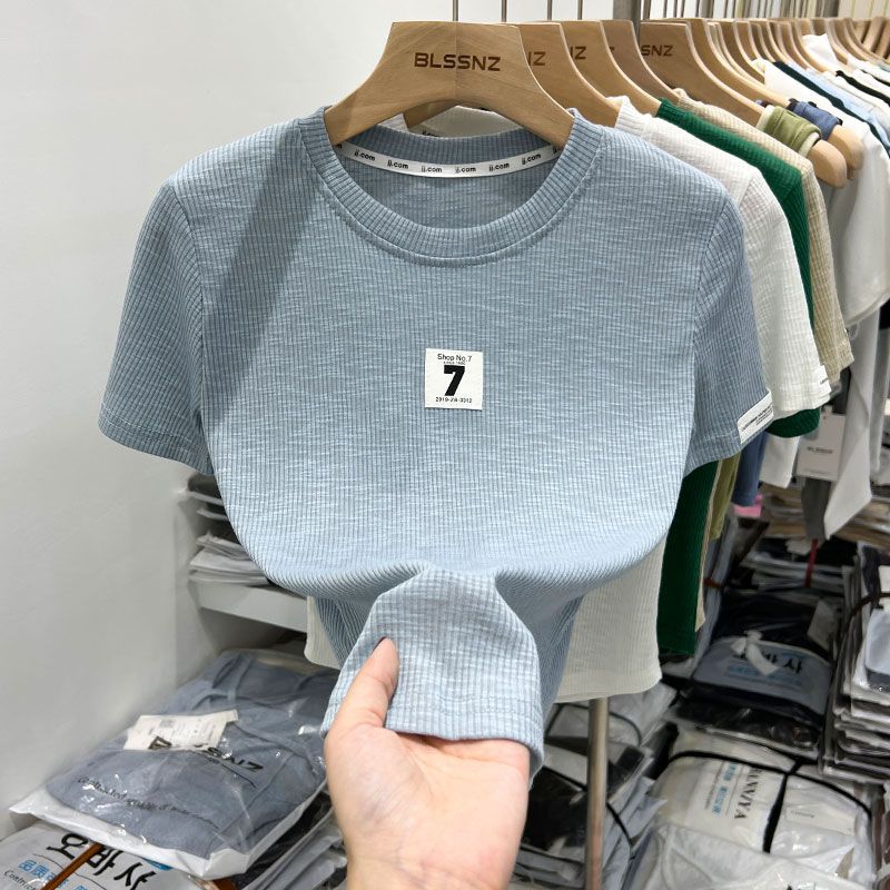欧货螺纹短袖t恤女ins潮夏装新款设计感独特上衣半袖体恤