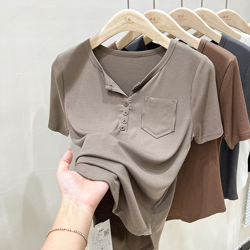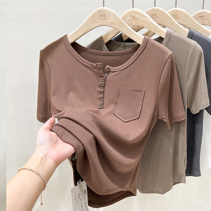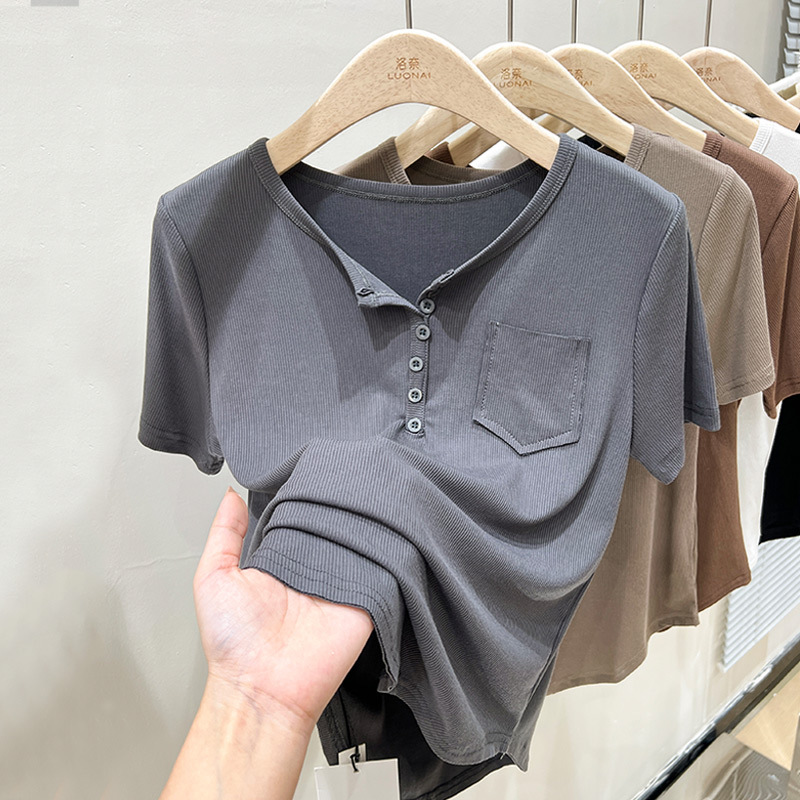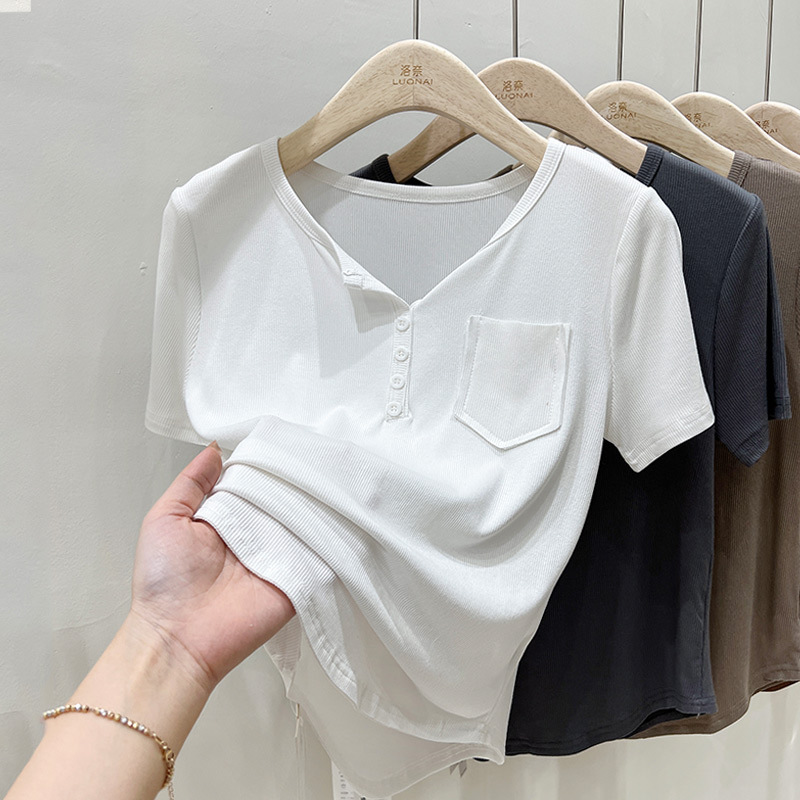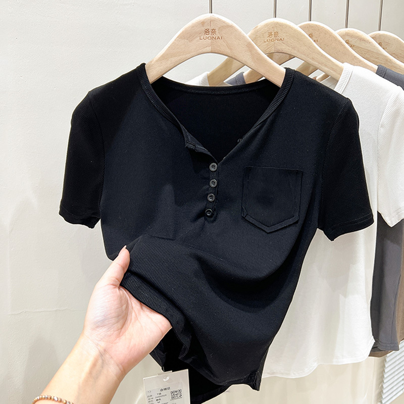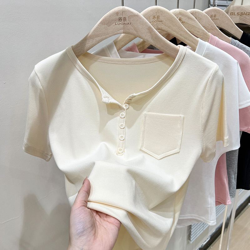 螺纹短袖t恤女ins潮纯欲独特别致锁骨设计感小众上衣体恤半袖