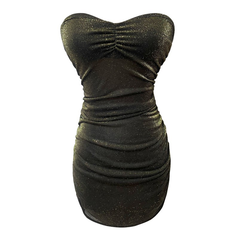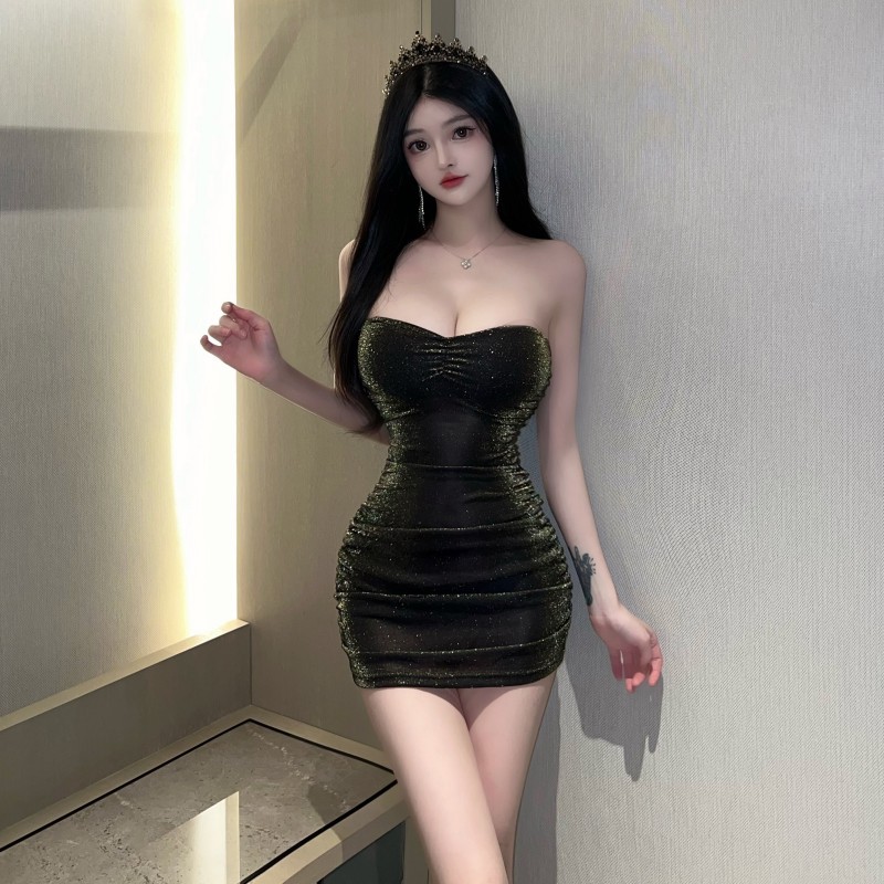 夜场酒吧蹦迪低胸细闪性感诱惑透视露肩抹胸短裙紧身包臀连衣裙女