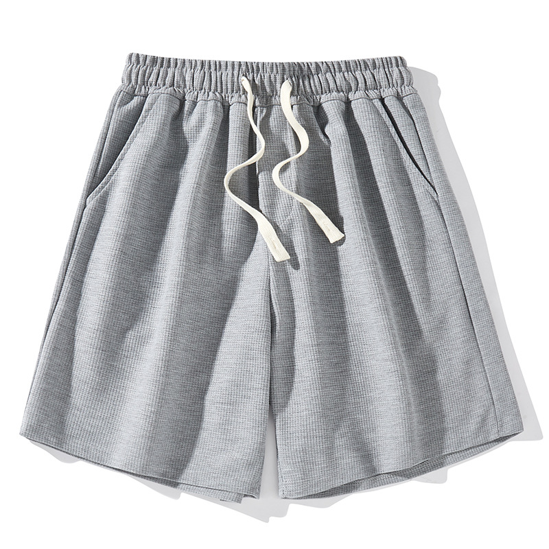 夏季纯色简约短裤男潮牌宽松bf休闲潮流松紧腰抽绳运动五分裤