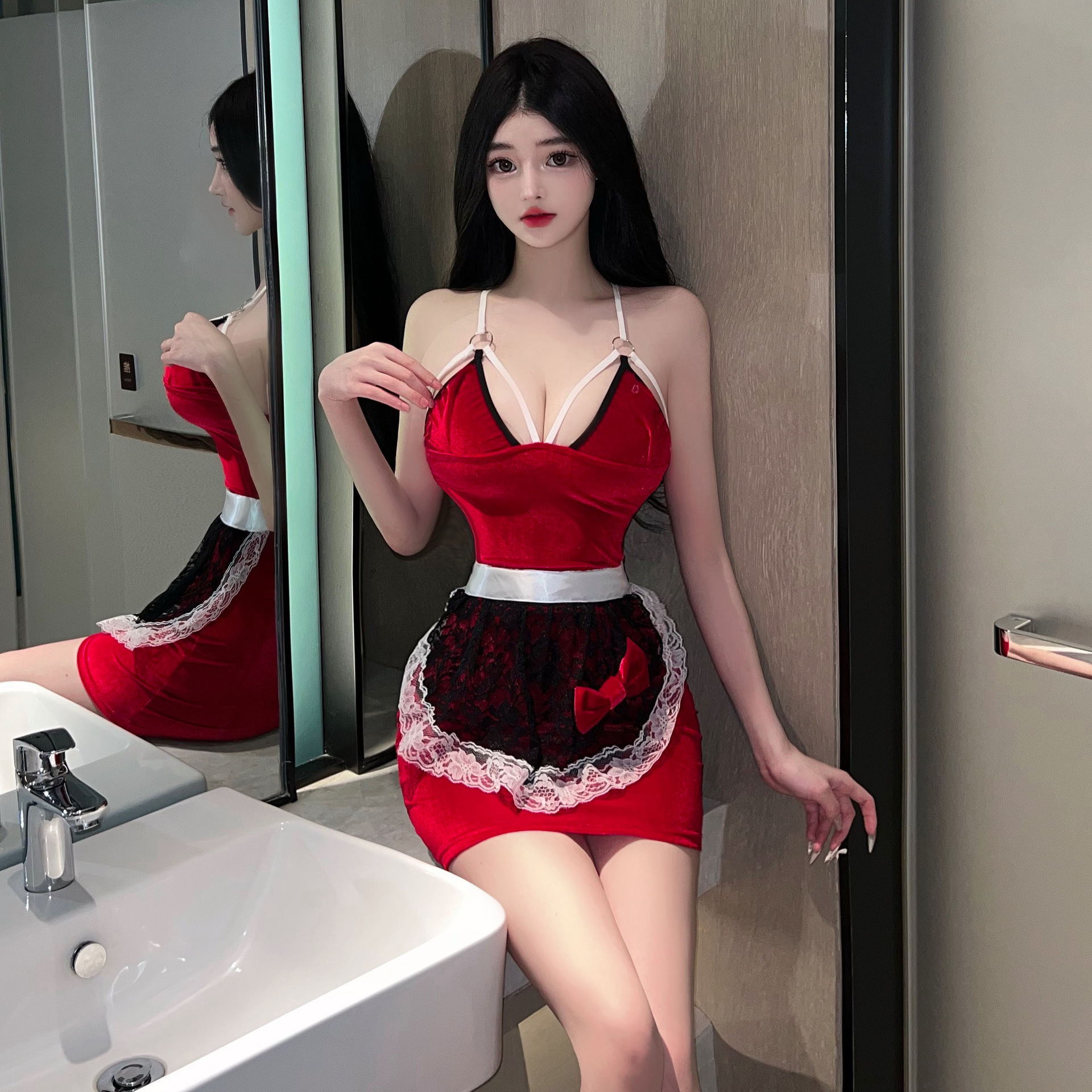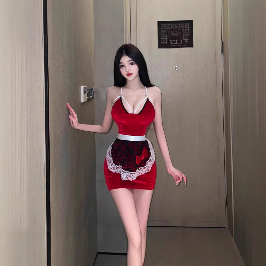 设计感蝴蝶结立体装饰吊带红色圣诞新年辣妹性感低胸时尚连衣裙女