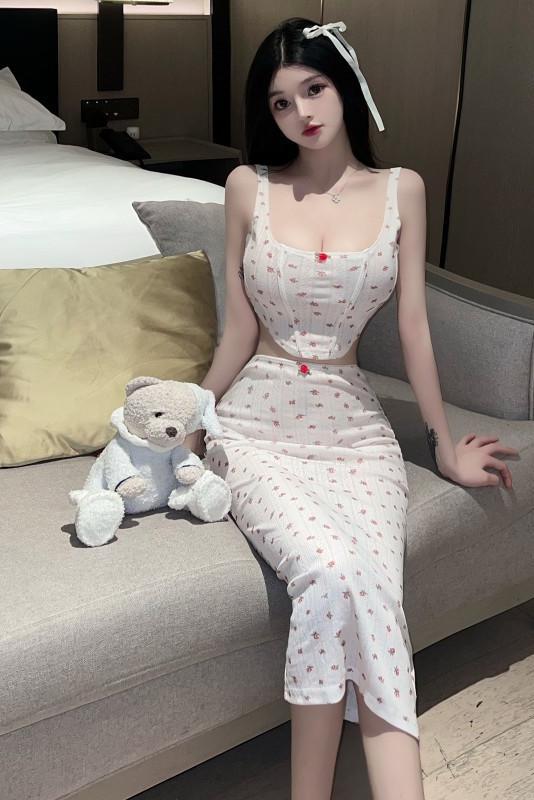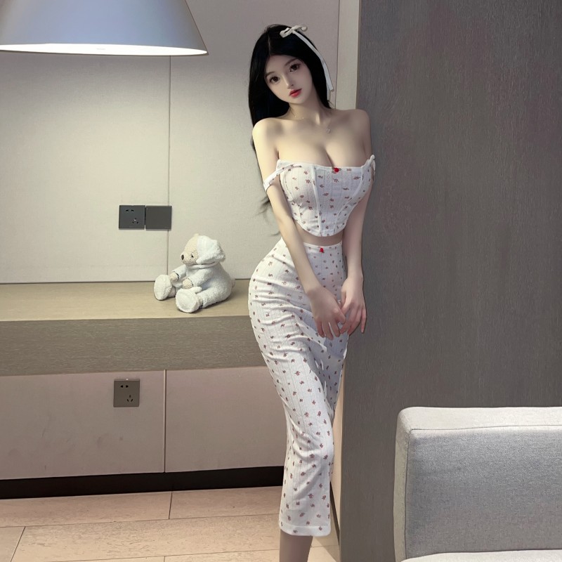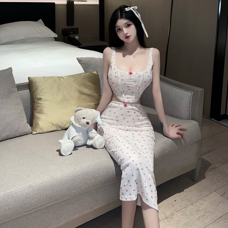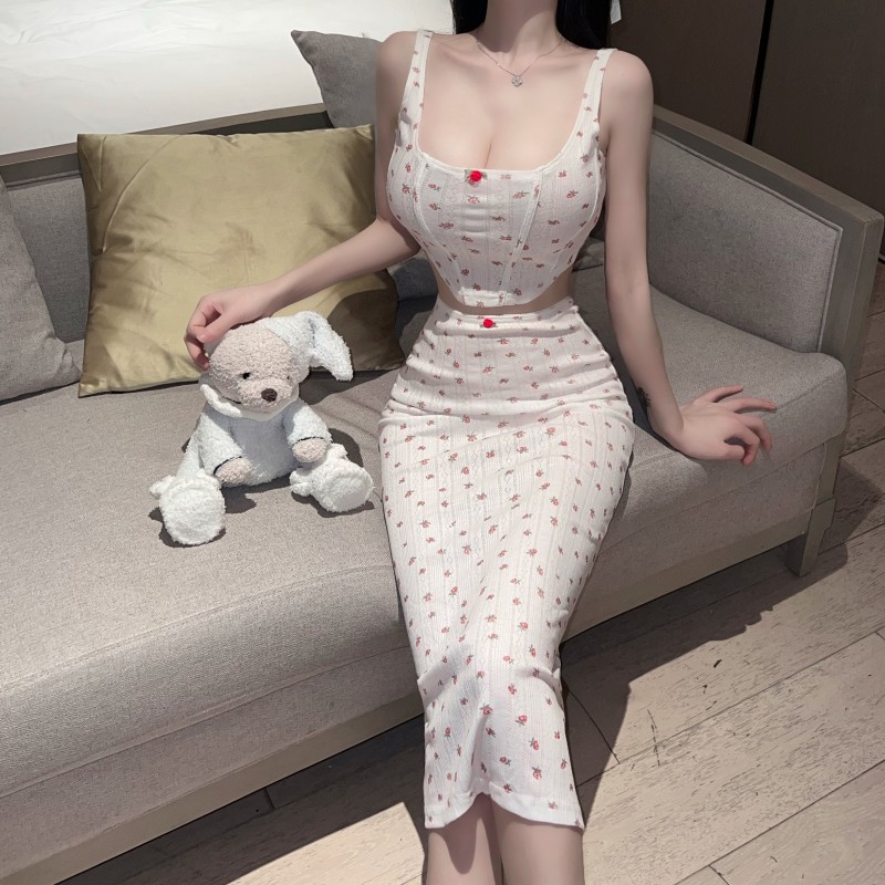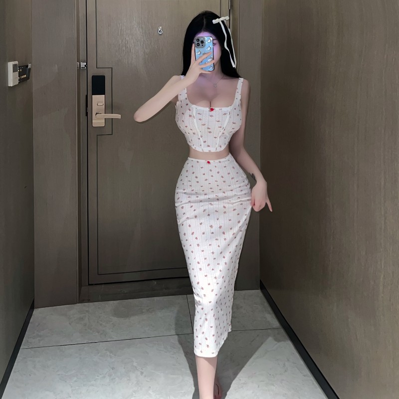 碎花小背心+包臀中长裙法式套装优雅气质显瘦女神范ins御姐风时尚