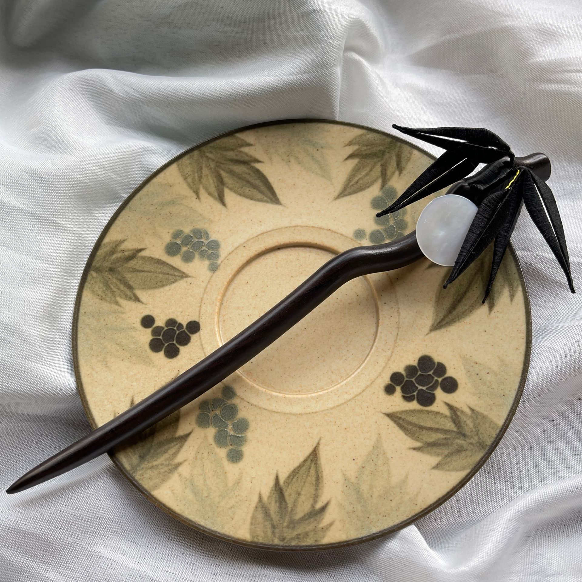 原创新中式非遗缠花蚕丝线发簪水墨竹叶檀木簪古风汉服旗袍盘发