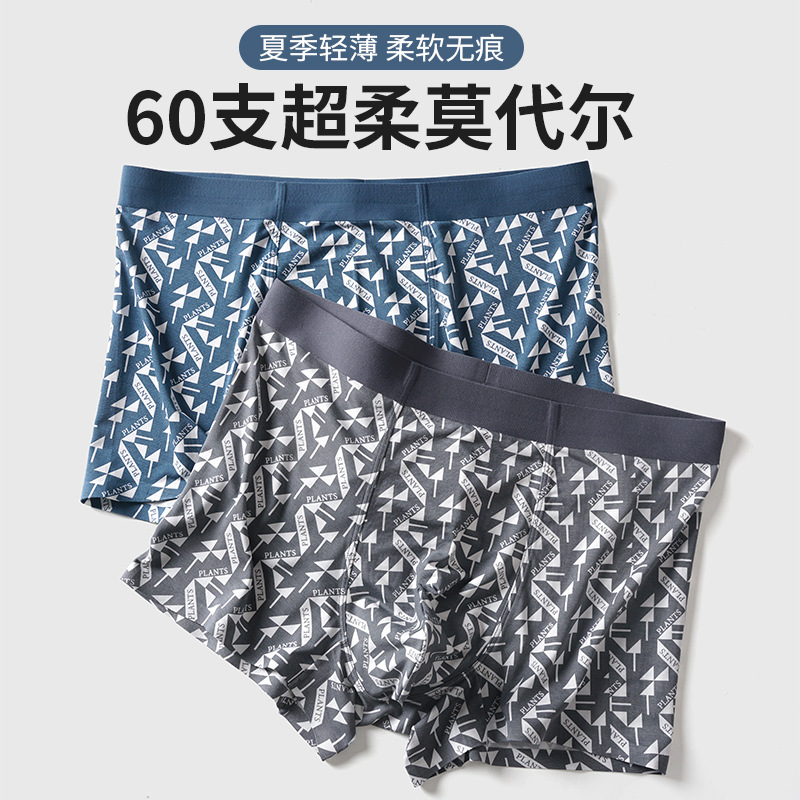 内裤男士莫代尔无痕平角裤印花大码中腰男生四角内裤透气裤衩