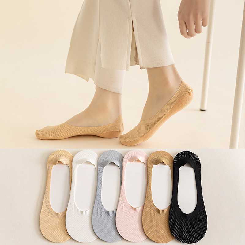 冰丝袜子女网眼透气纯色隐形袜春夏新款后跟硅胶不掉跟船袜女百搭