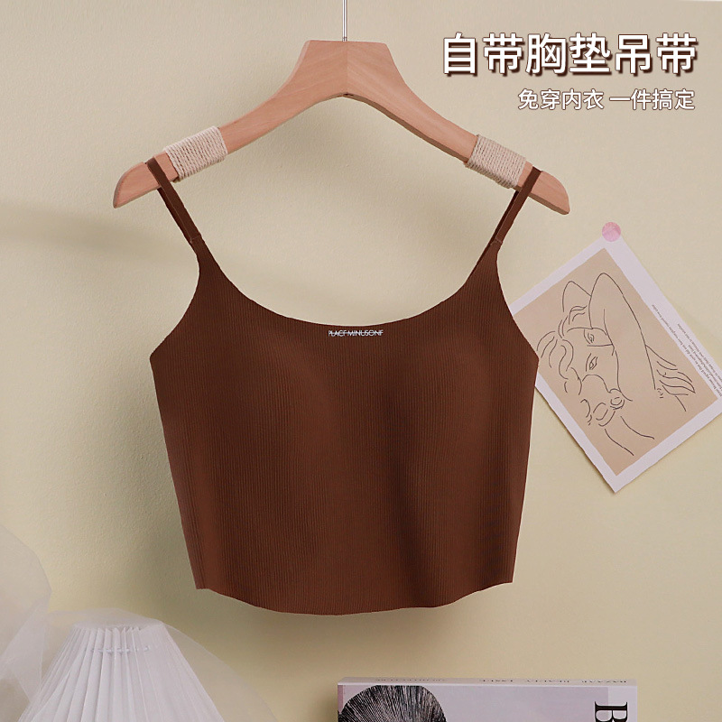 固定杯一体式吊带背心女无痕内衣夏透气聚拢收副乳胸罩可外穿打底