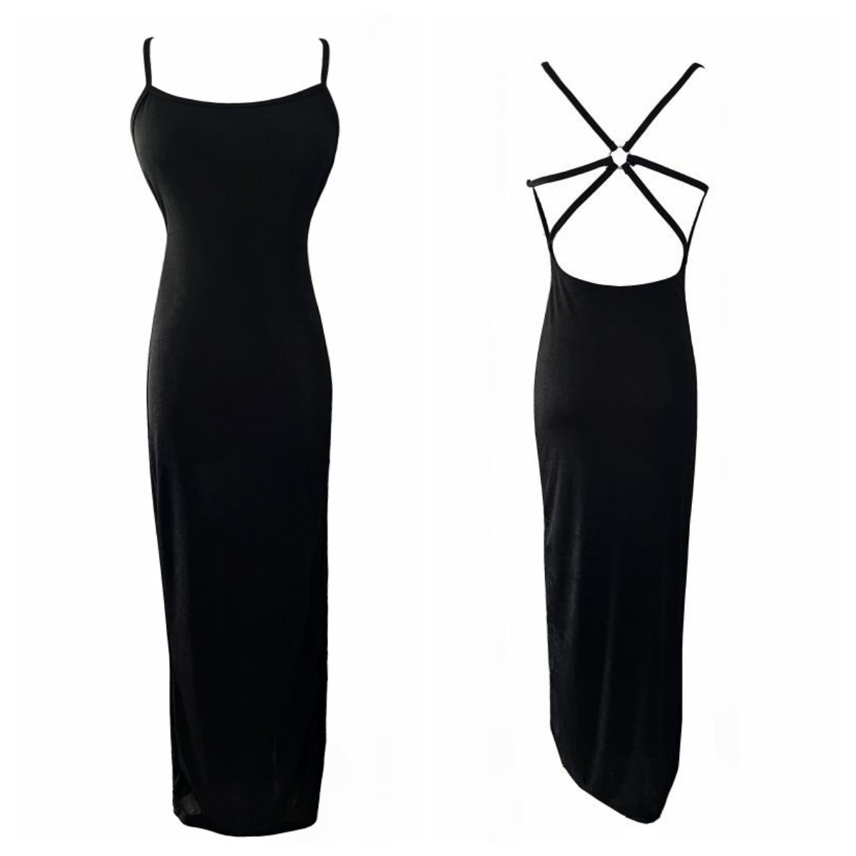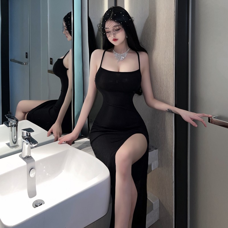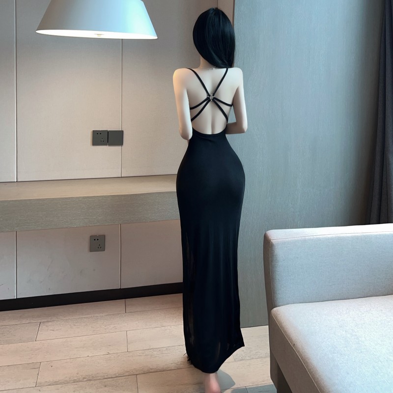 性感辣妹露背气质修身包臀长裙吊带开叉连衣裙女