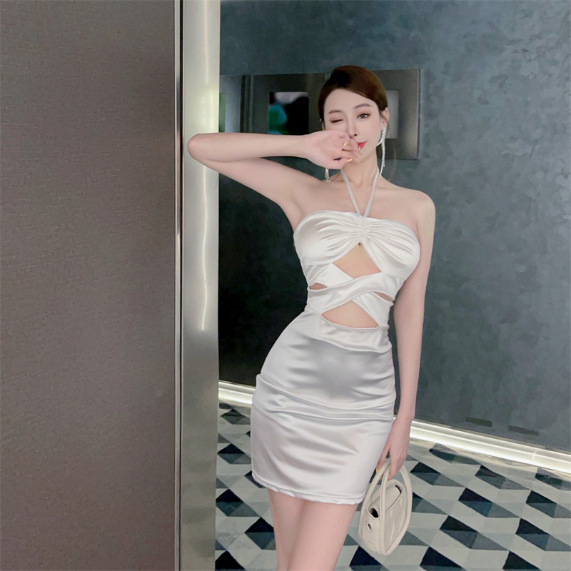 欧美交叉镂空挂脖裙子性感露背修身显瘦连衣裙女