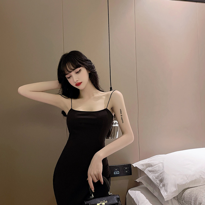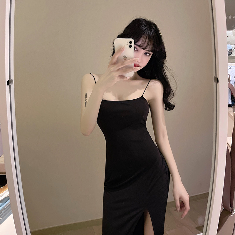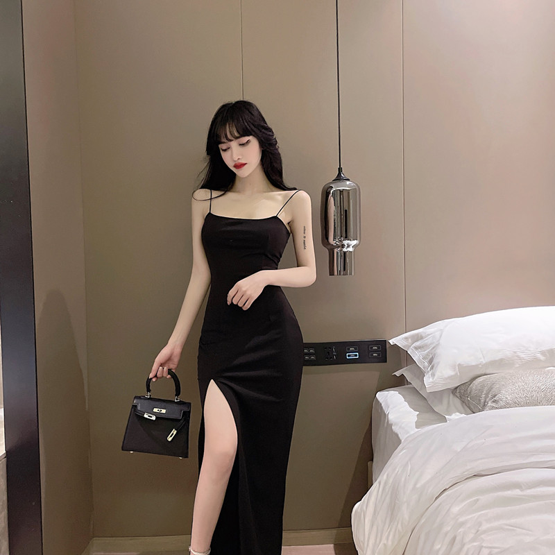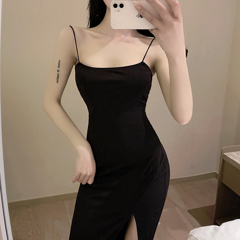 欧美气质开叉吊带长裙女ins修身性感风连衣裙女