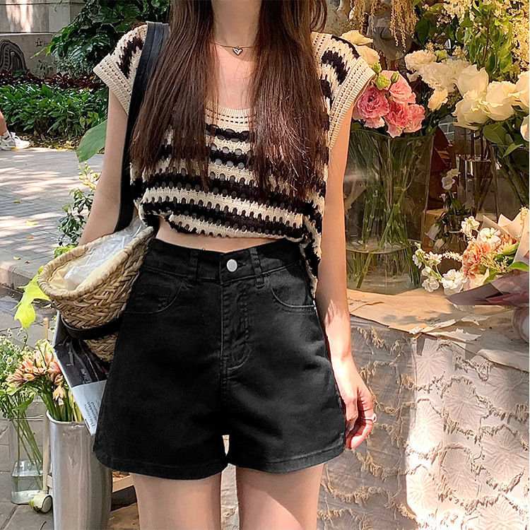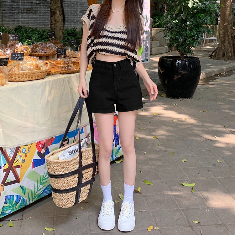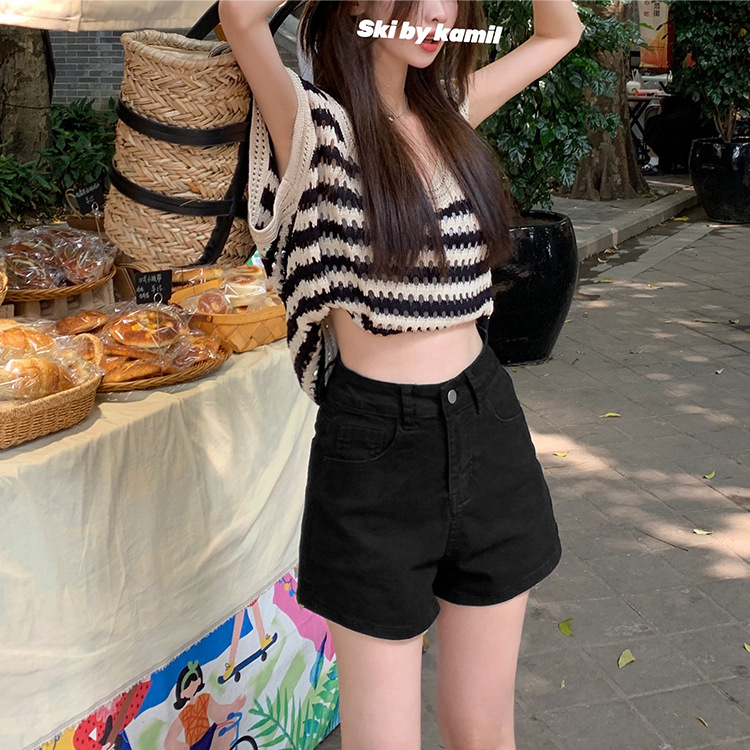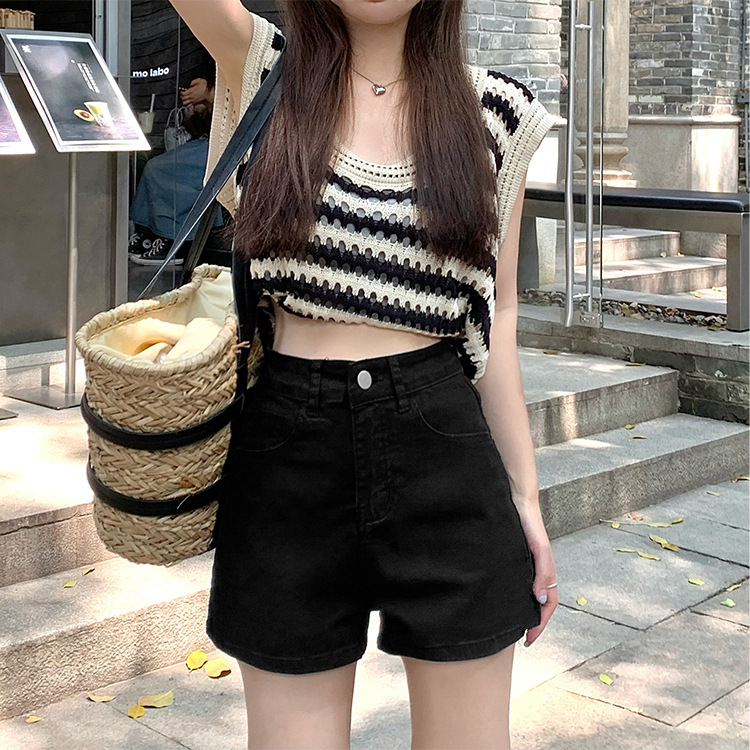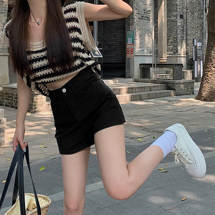 605甜辣牛仔短裤女夏季新款高腰显瘦设计感百搭宽松A字热裤