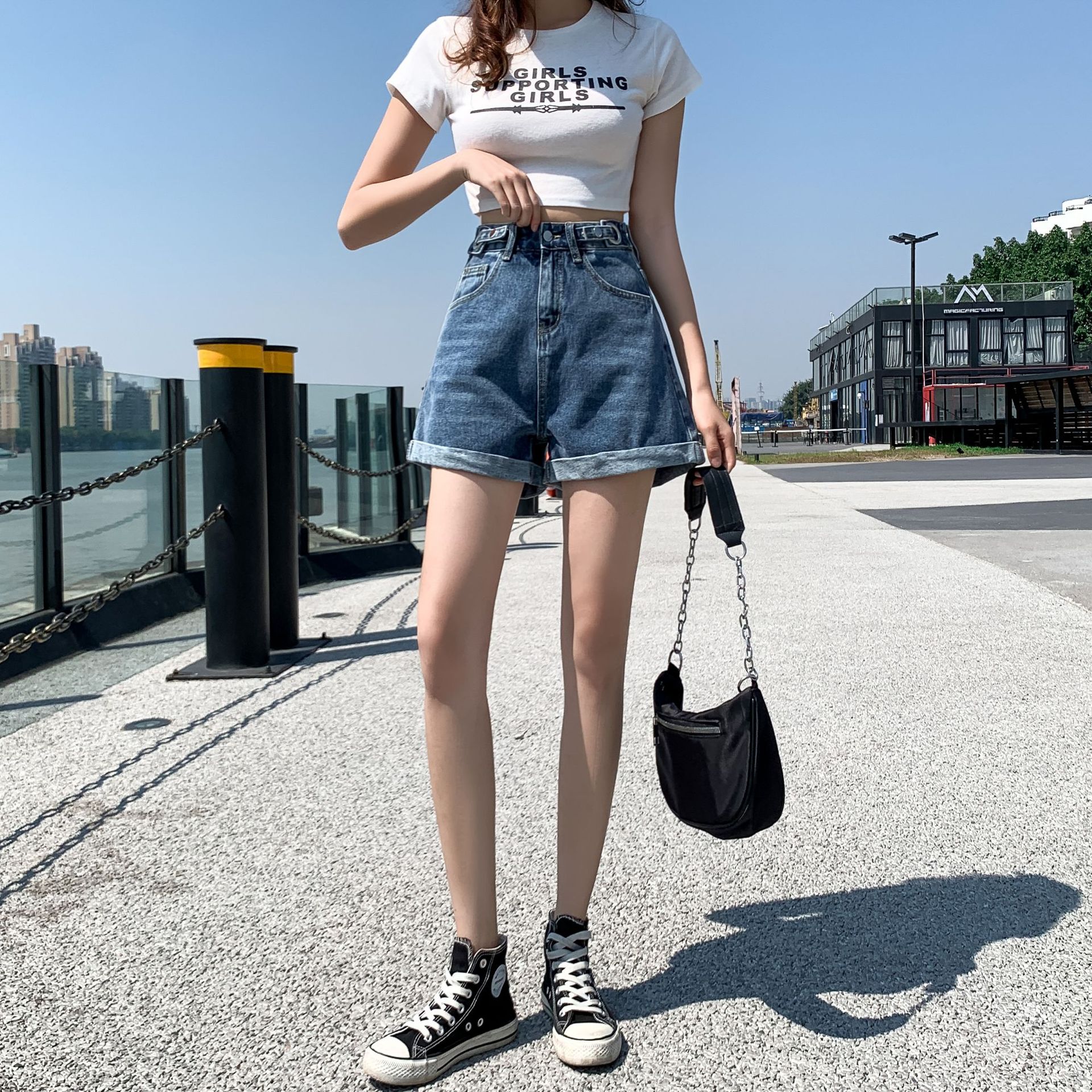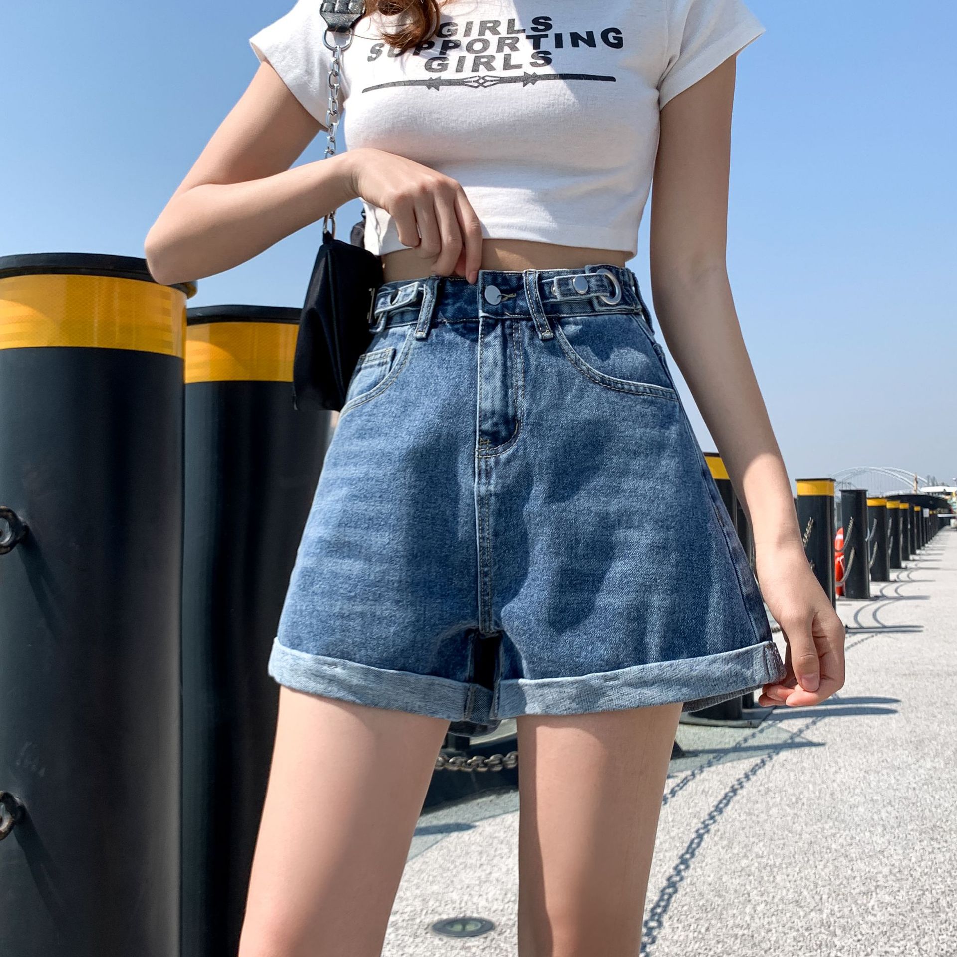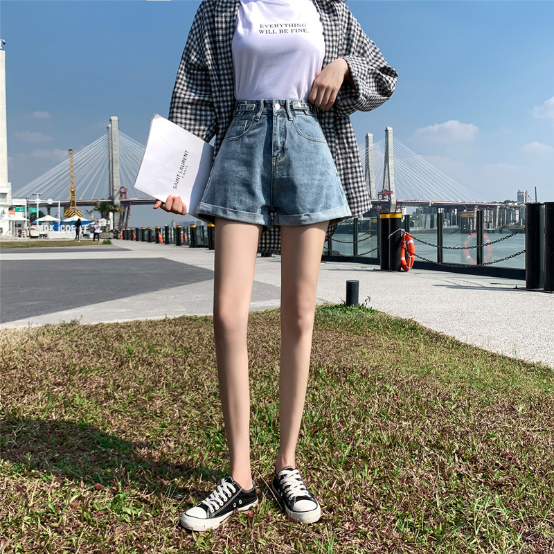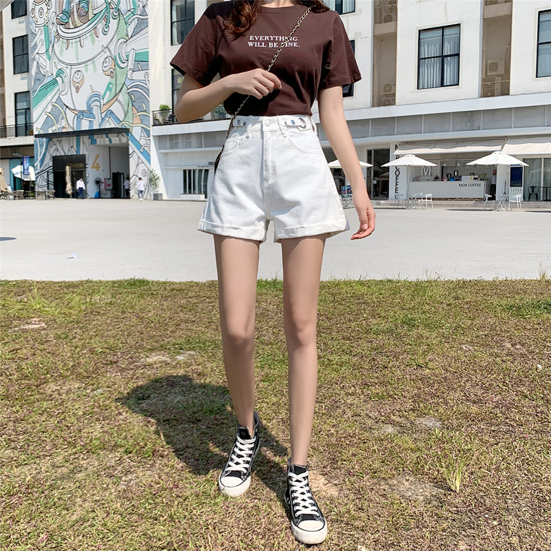 高腰白色牛仔短裤女夏薄款新款设计感显瘦辣妹三分短裤热裤