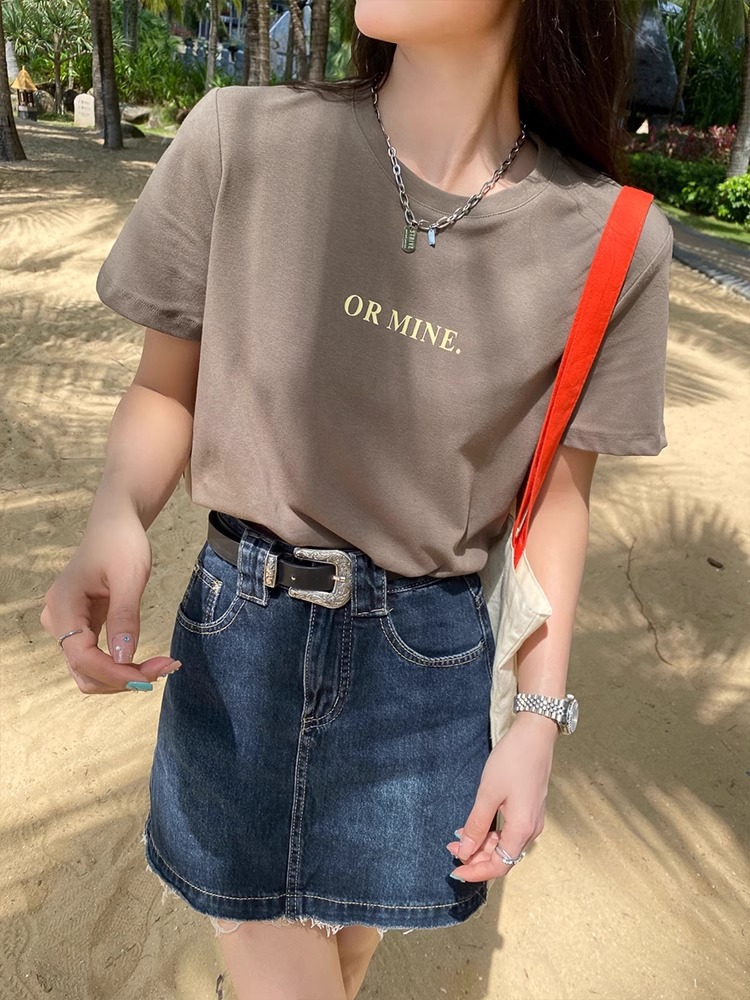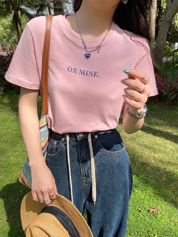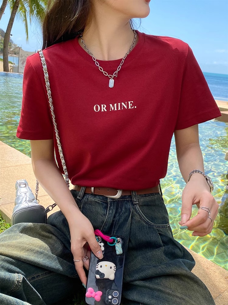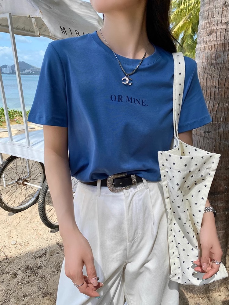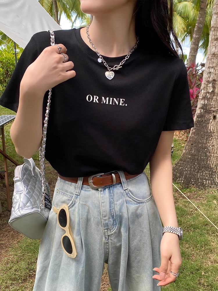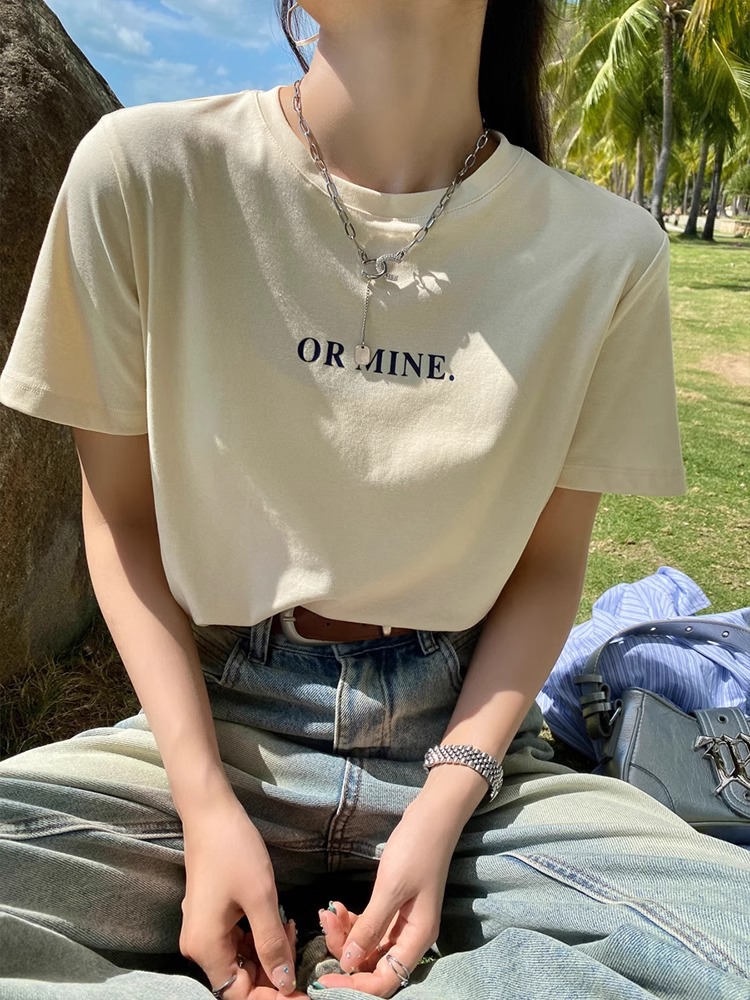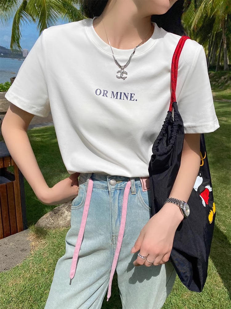 垂感显瘦莫代尔宽松T恤显白字母印花圆领薄款凉爽百搭短袖上衣女